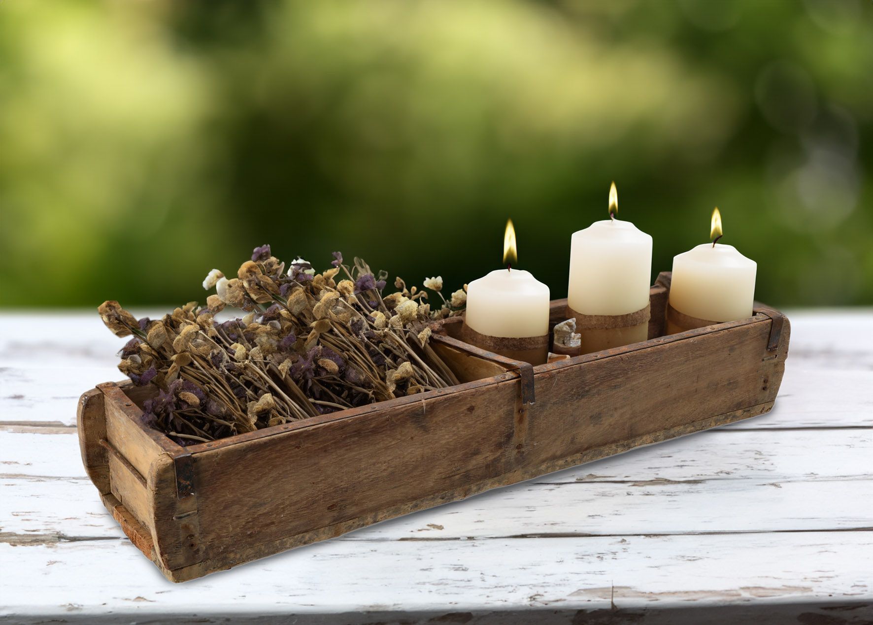 Vintage Holz Kiste Ziegel Form - groß / 60 x 15 cm - Tisch Deko Schale alt used look