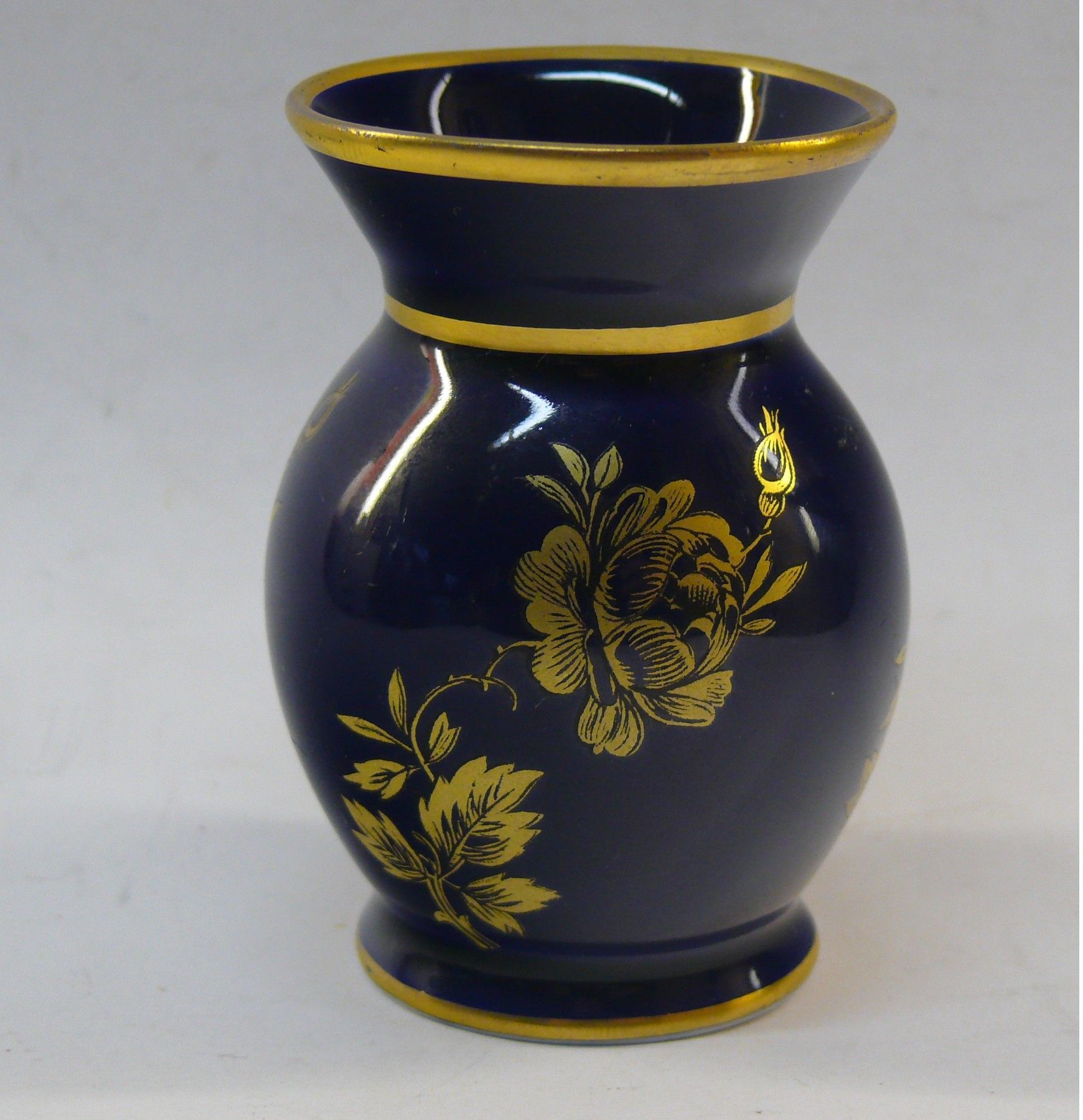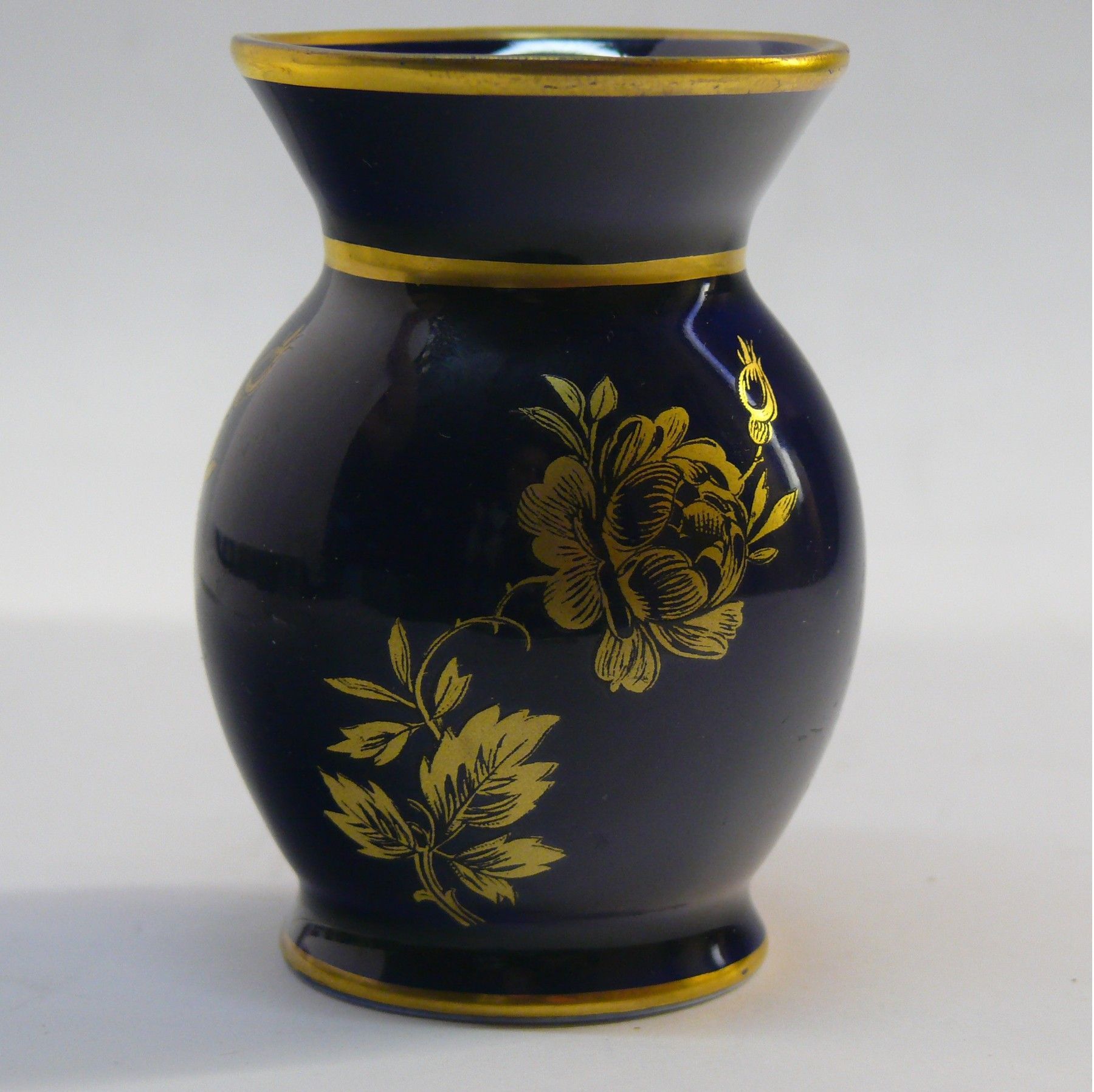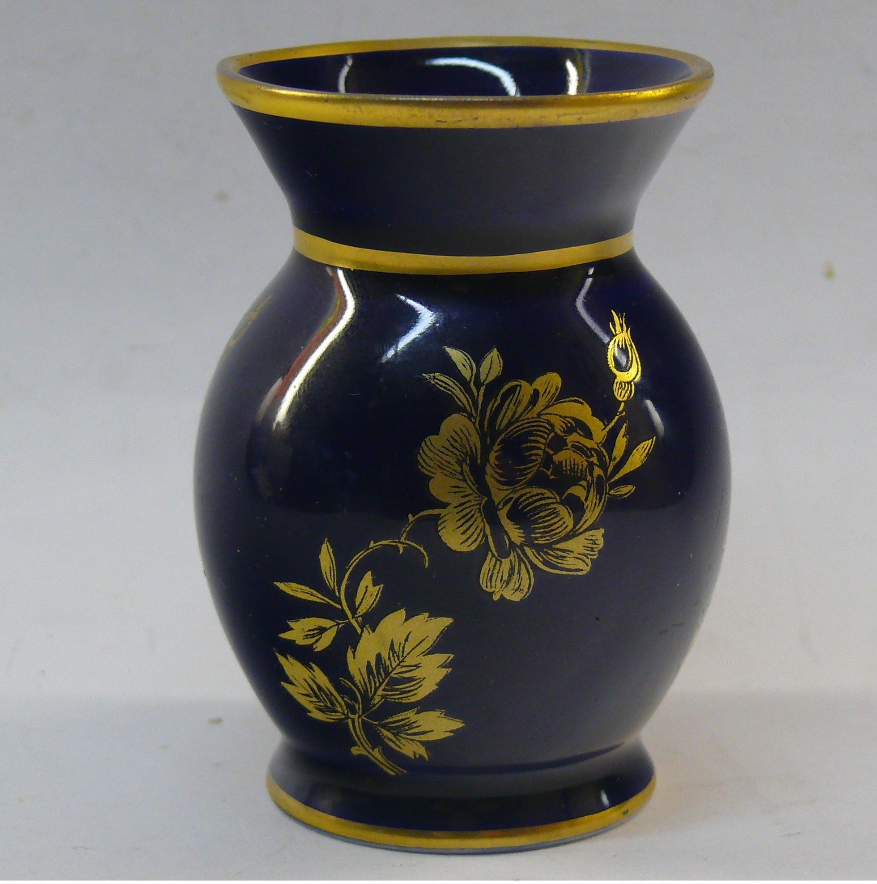 Vintage König Porzellan Bavaria Thiersheim Vase Echt Kobalt Goldmalerei Goldrand