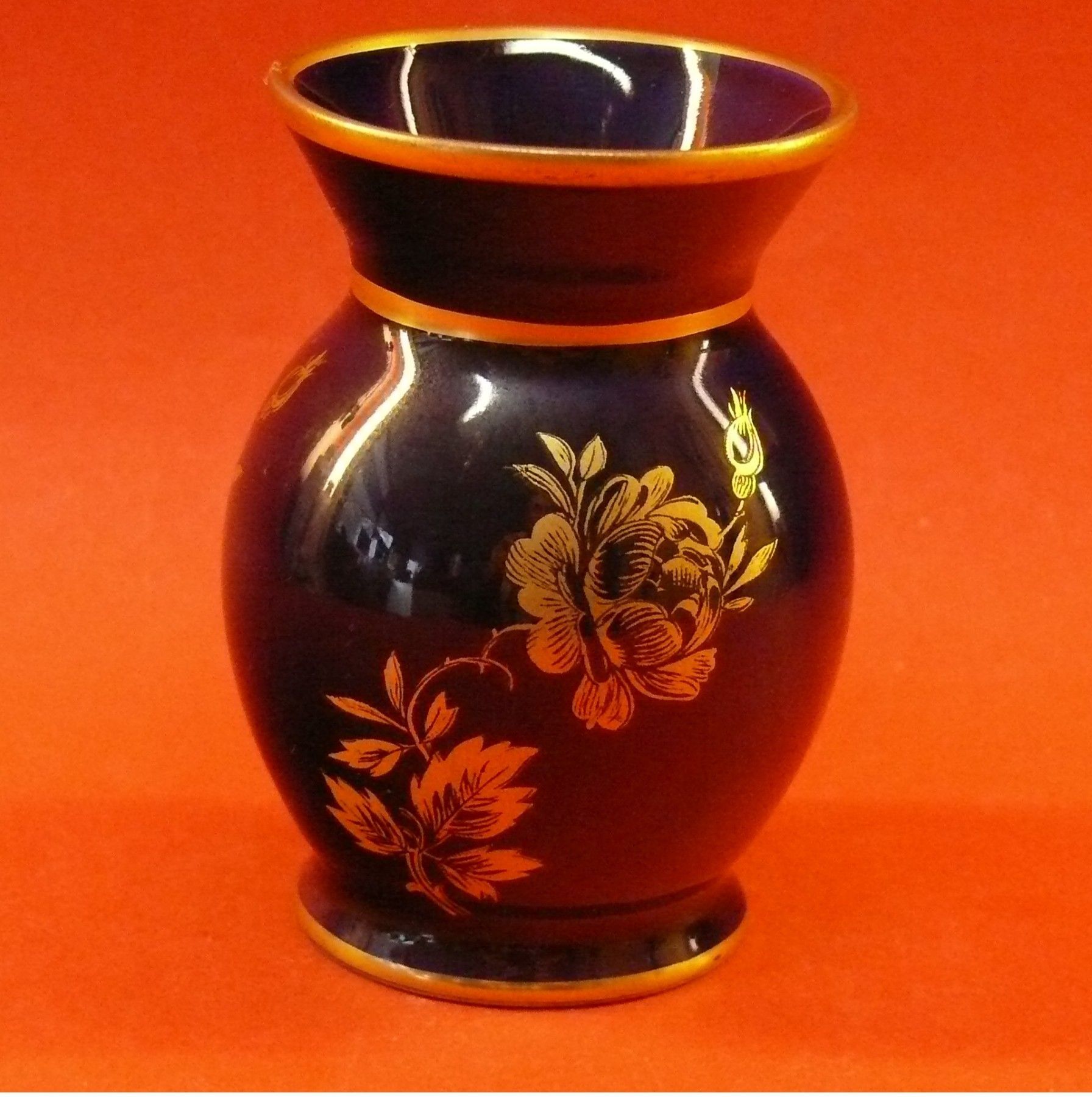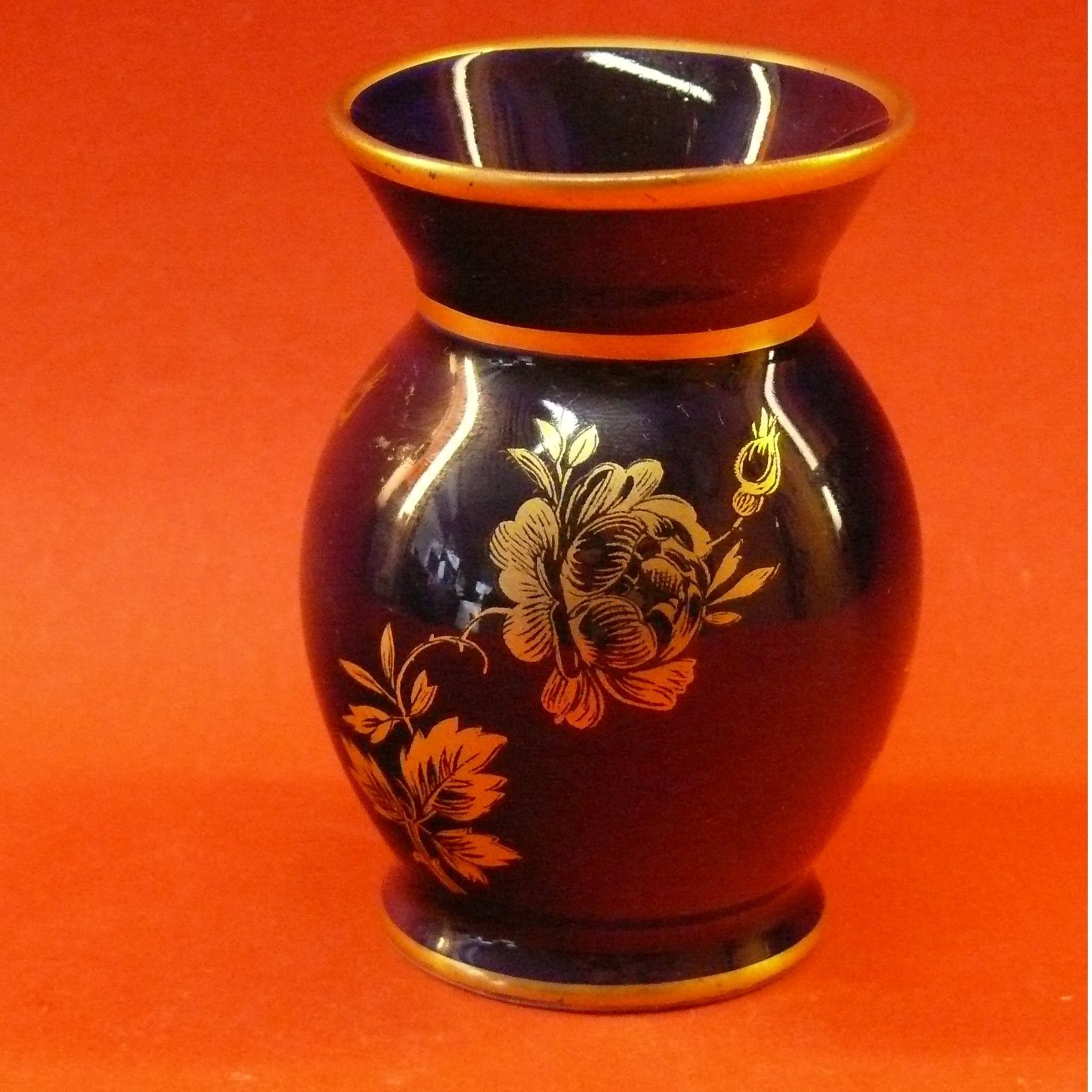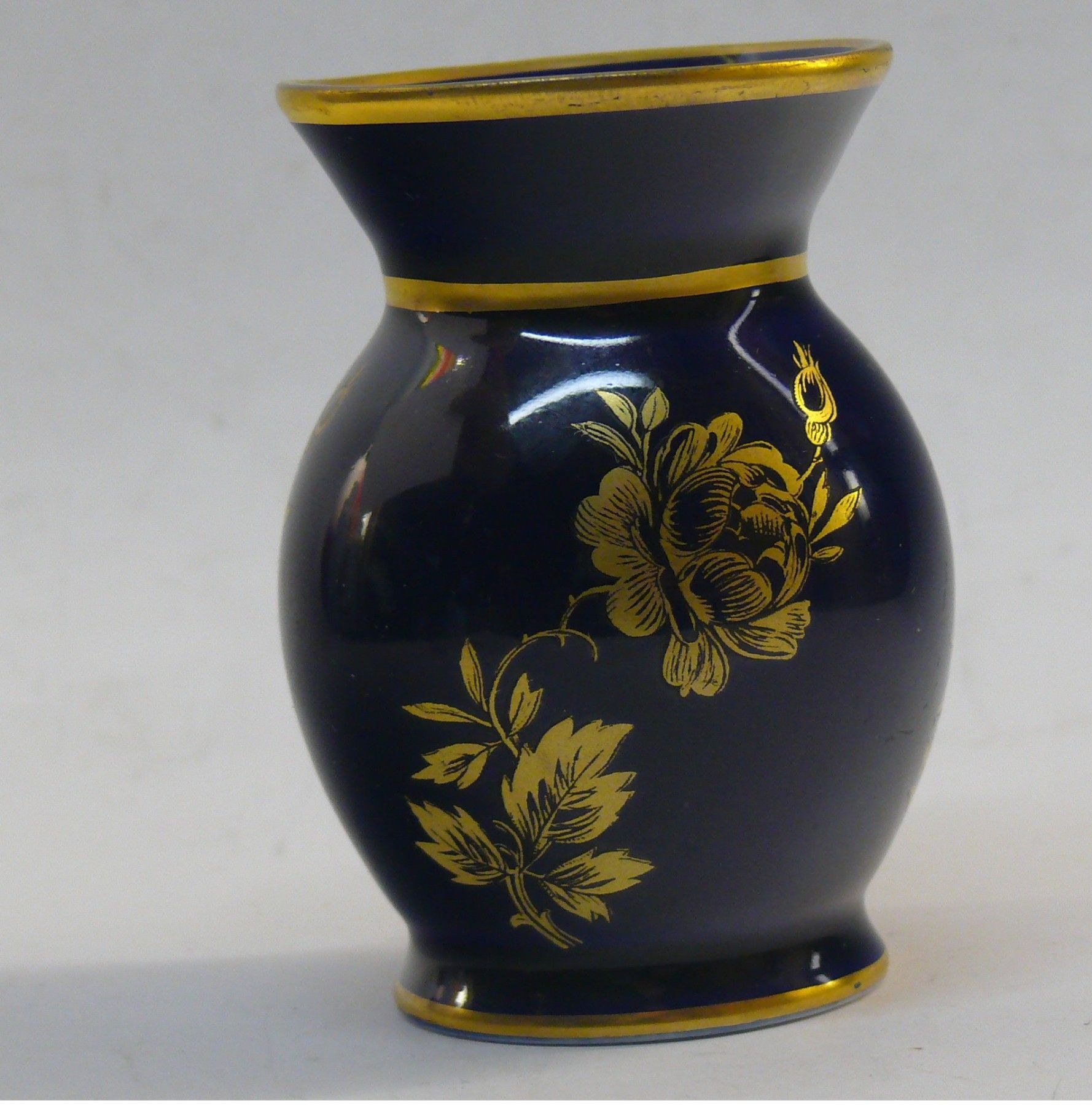 Vintage König Porzellan Bavaria Thiersheim Vase Echt Kobalt Goldmalerei Goldrand