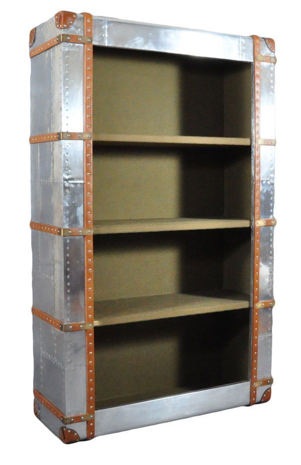 Vintage Leder Aufbewahrung Design Regal Bookcase Aluminium Echtleder Fach