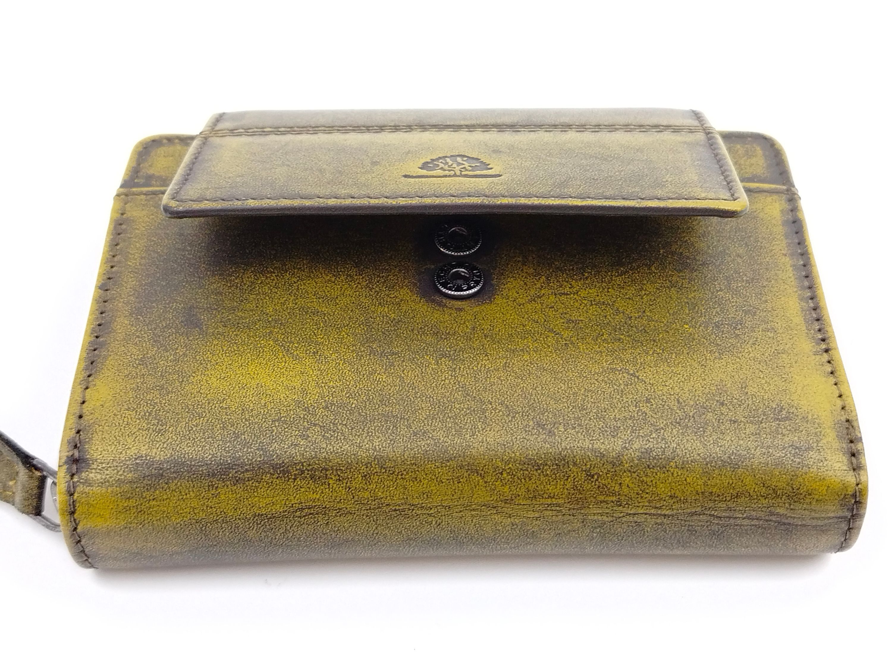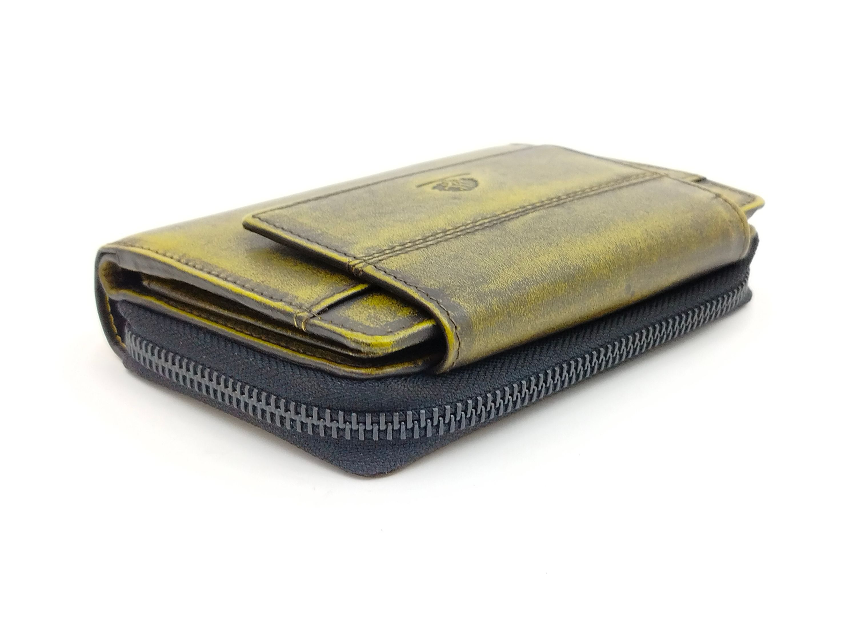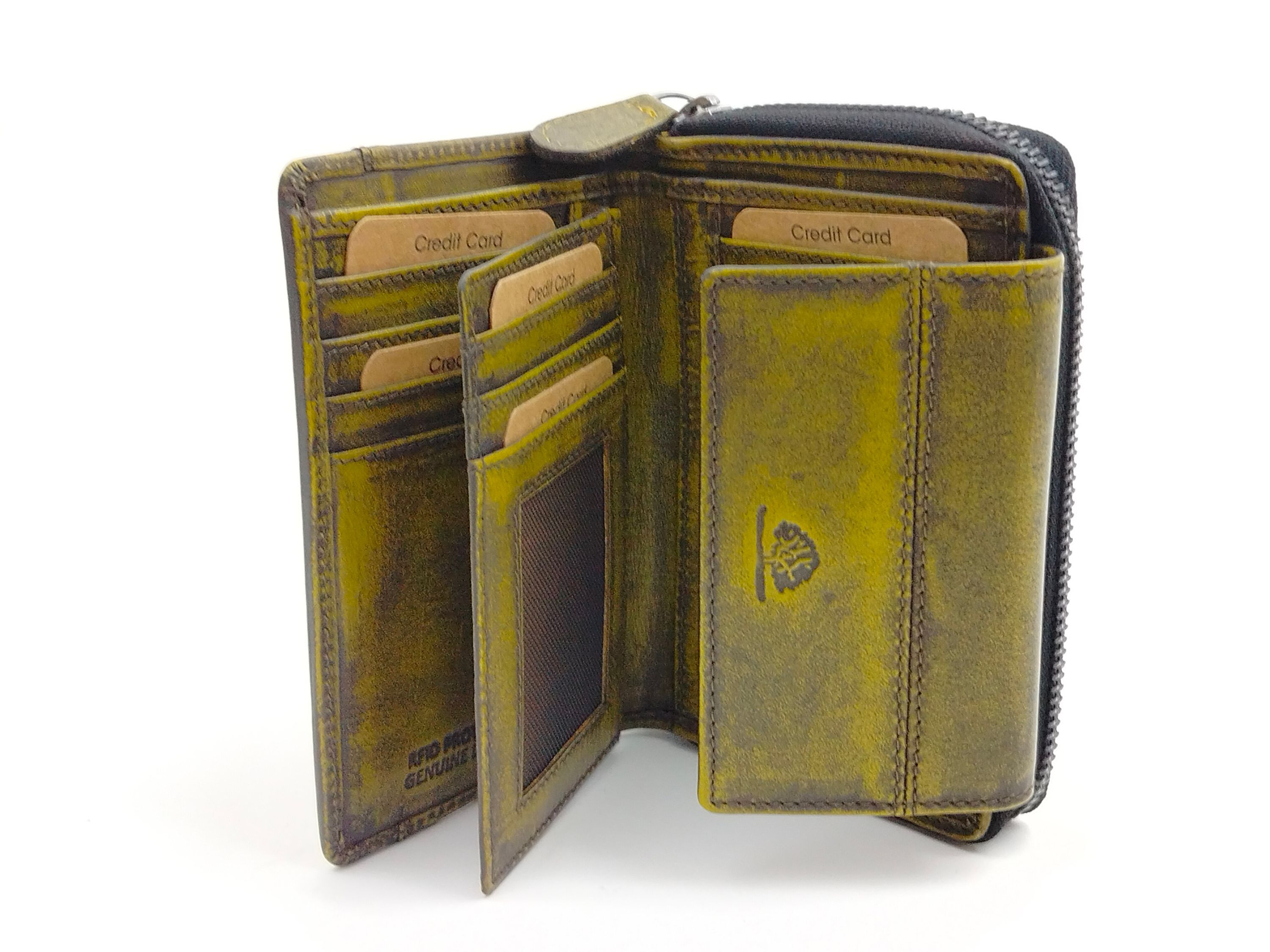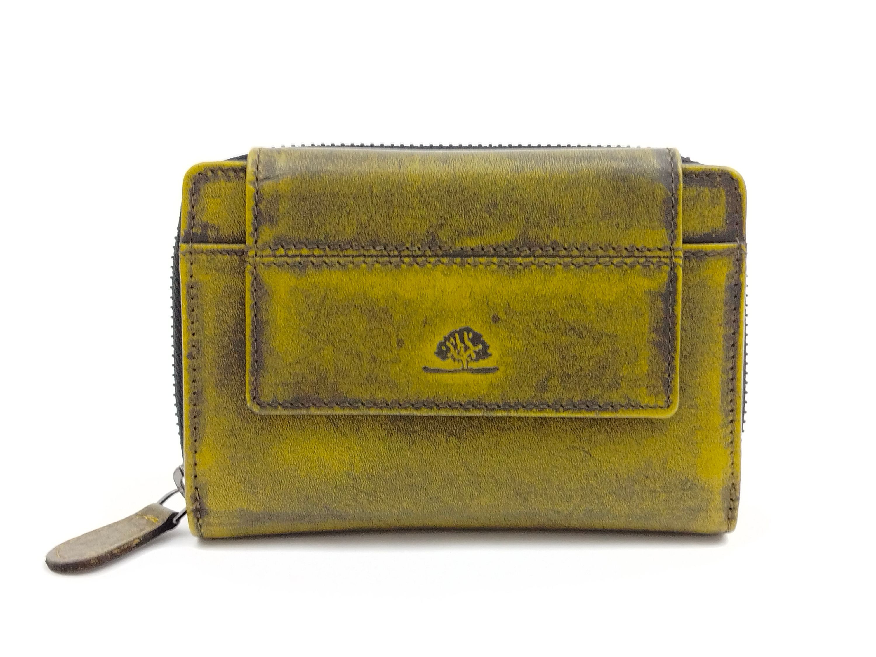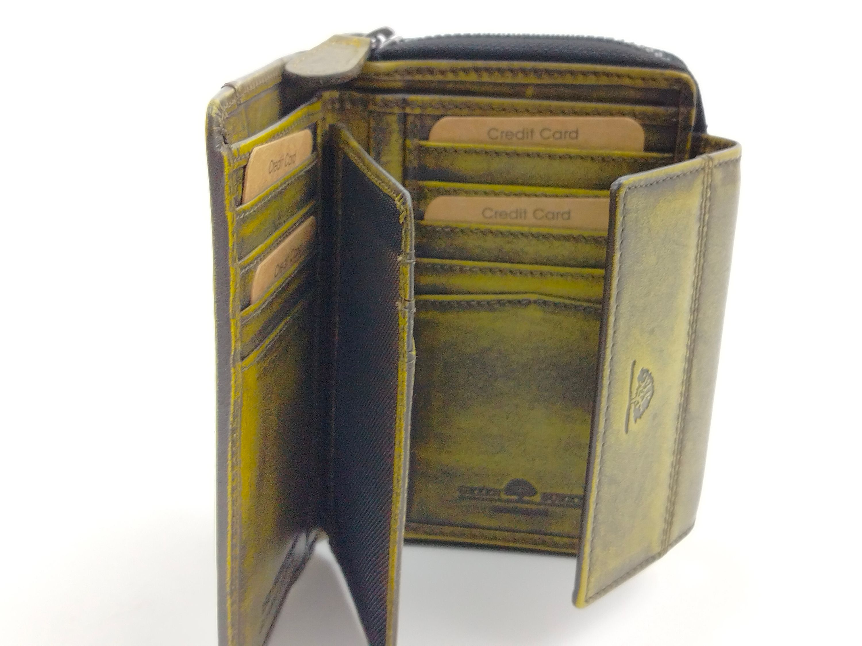 Greenburry Vintage Leder Damenbörse Used Look gelb-grün – RFID Geldbörse aus Rindleder