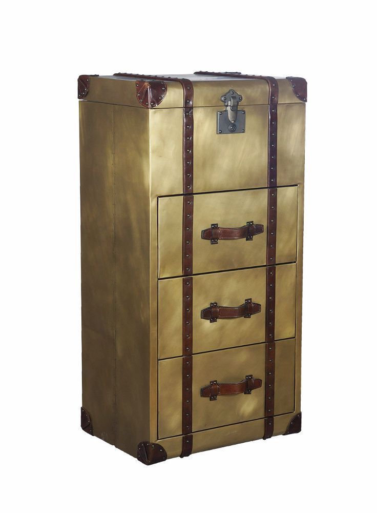 Vintage Leder Design Aufbewahrung Klassiker Truhe Goldcase Kiste Gold