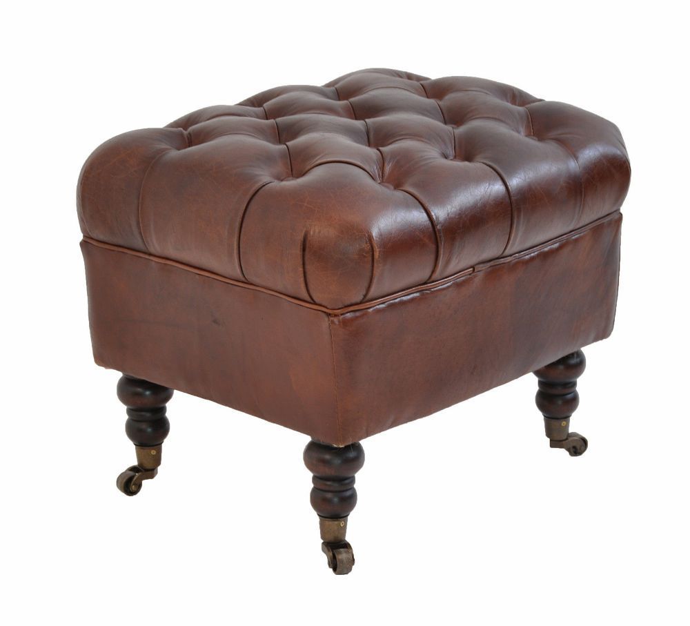Vintage Leder Design Hocker Klassiker Fußhocker Dover antik Reproduktion 1056ST
