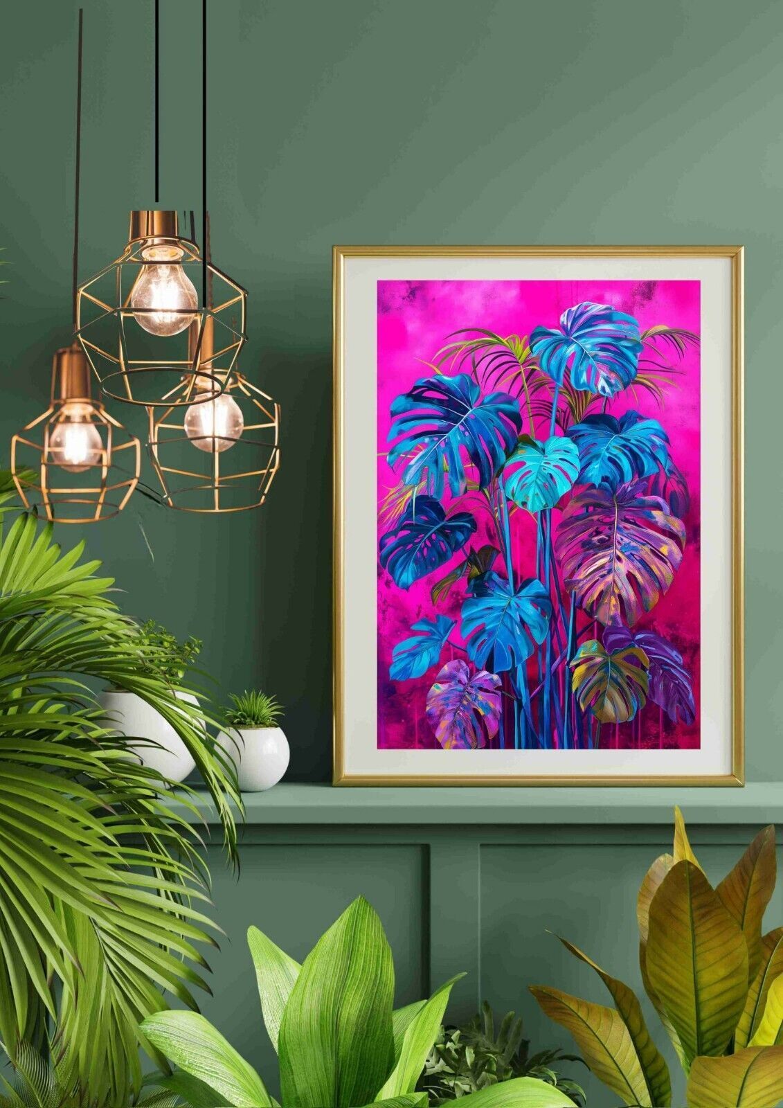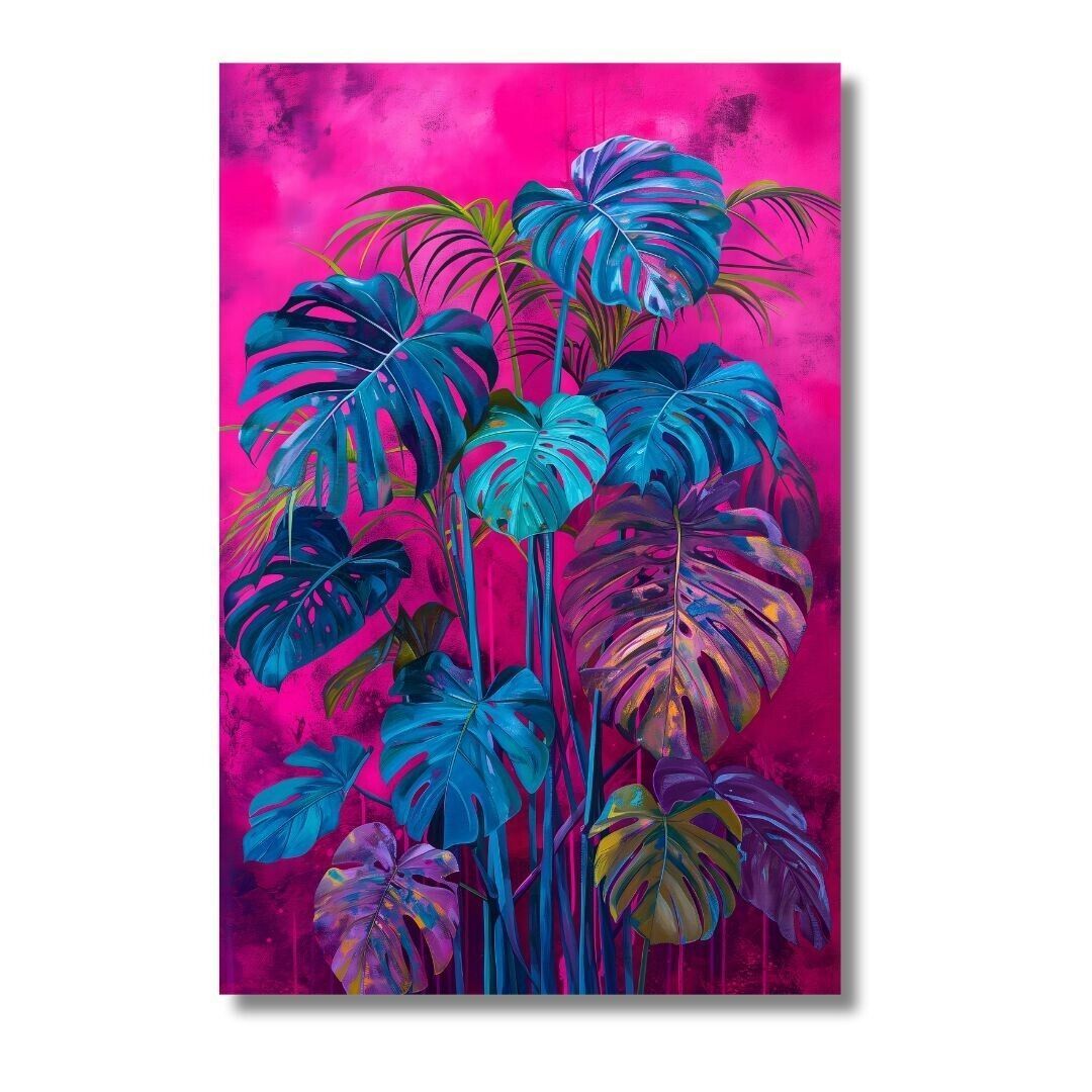 Vintage Monstera Poster DIN A4 / Pinkes Monstera Pflanzen Poster OHNE RAHMEN