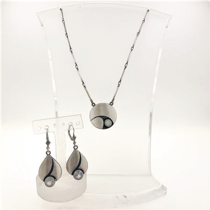 Vintage Set Collier und Ohrhänger mit "Bergkristall" aus 925 Silber
