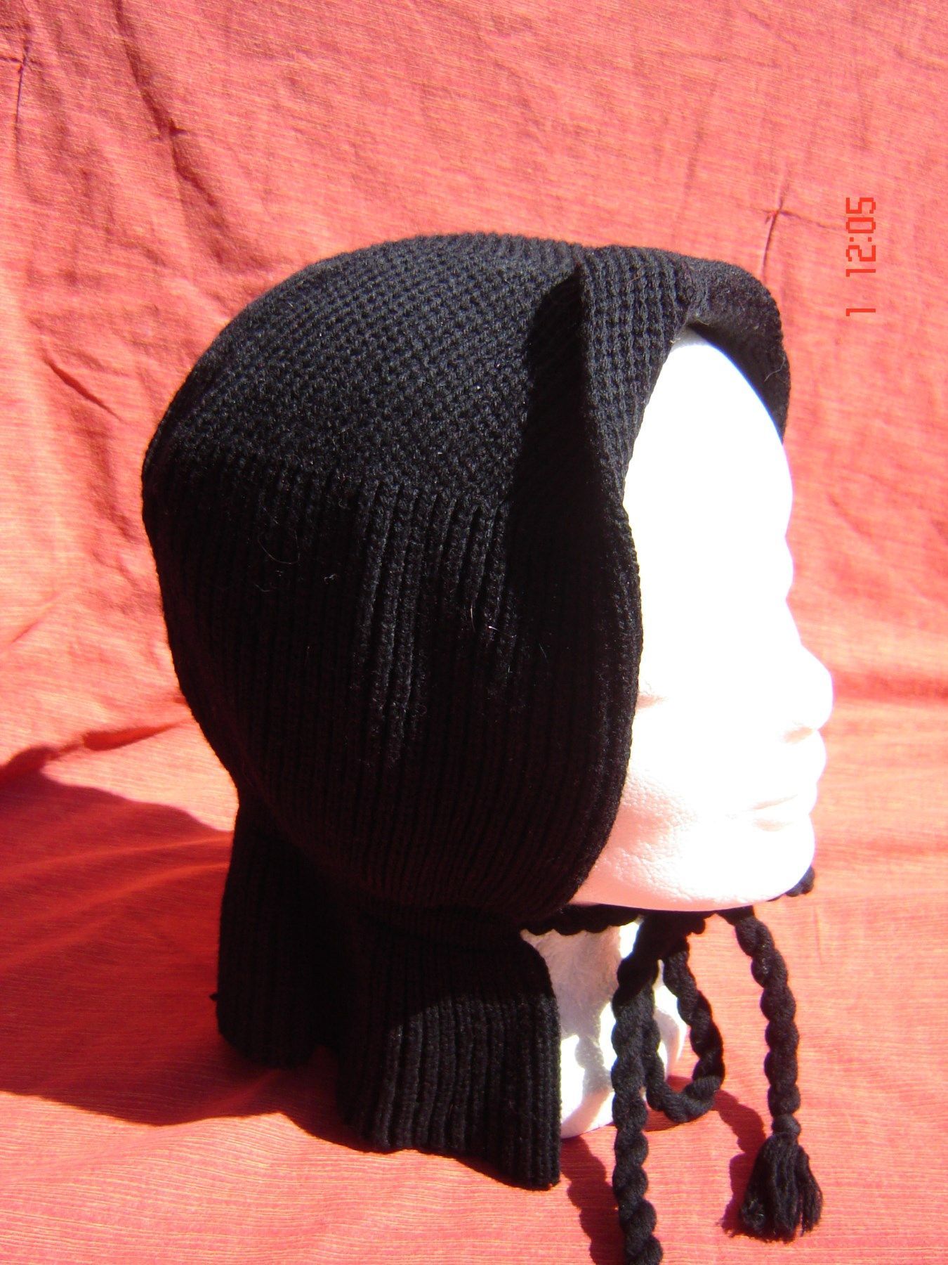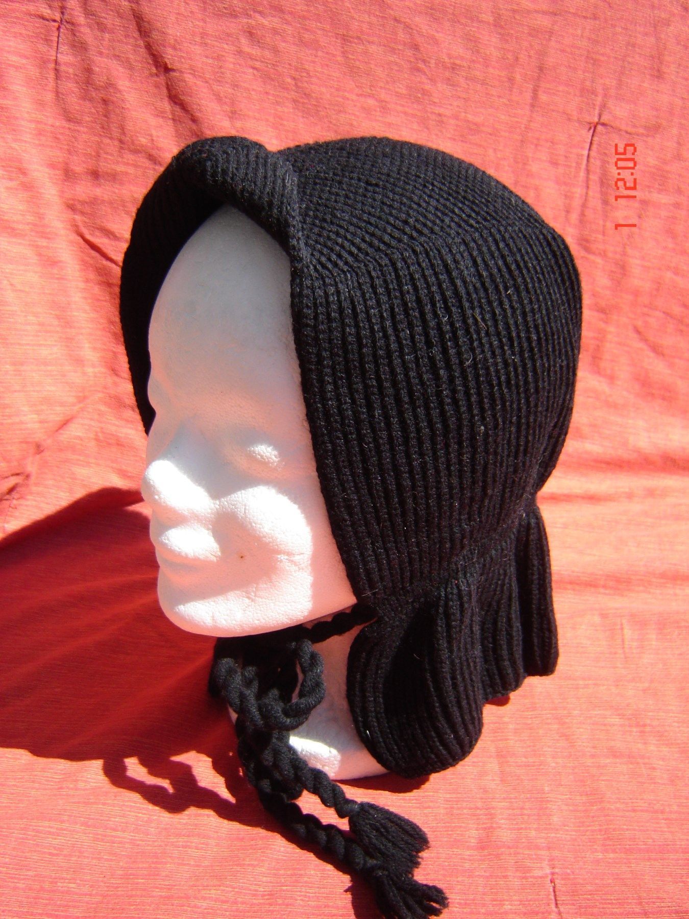 Vintage Strickmütze original 50er 60er Jahre Wintermütze schwarz mit Zugband Z p