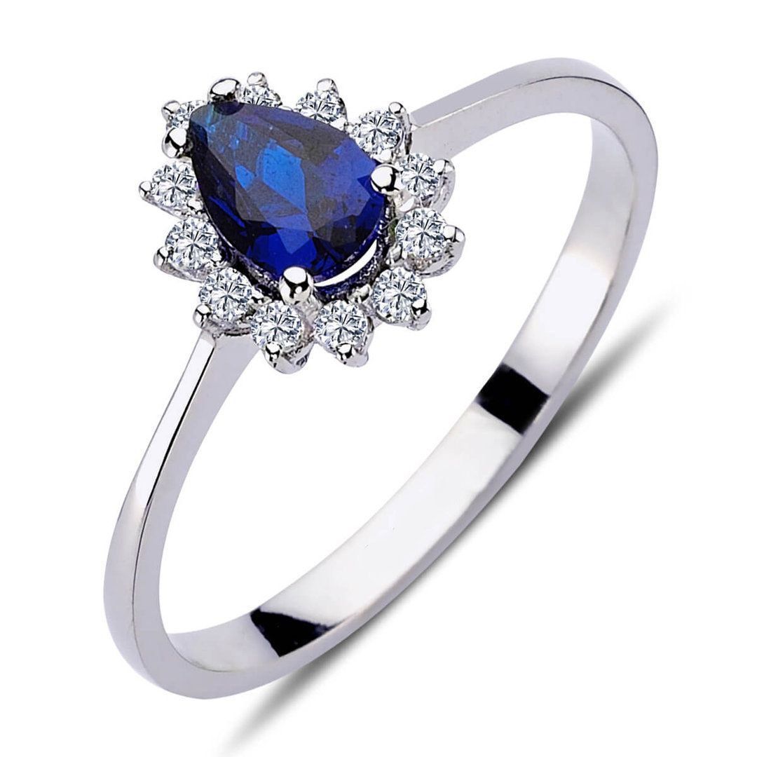 Vintage Style Diamant Saphir Entourage Ring Damenring in 14 Karat Weißgold