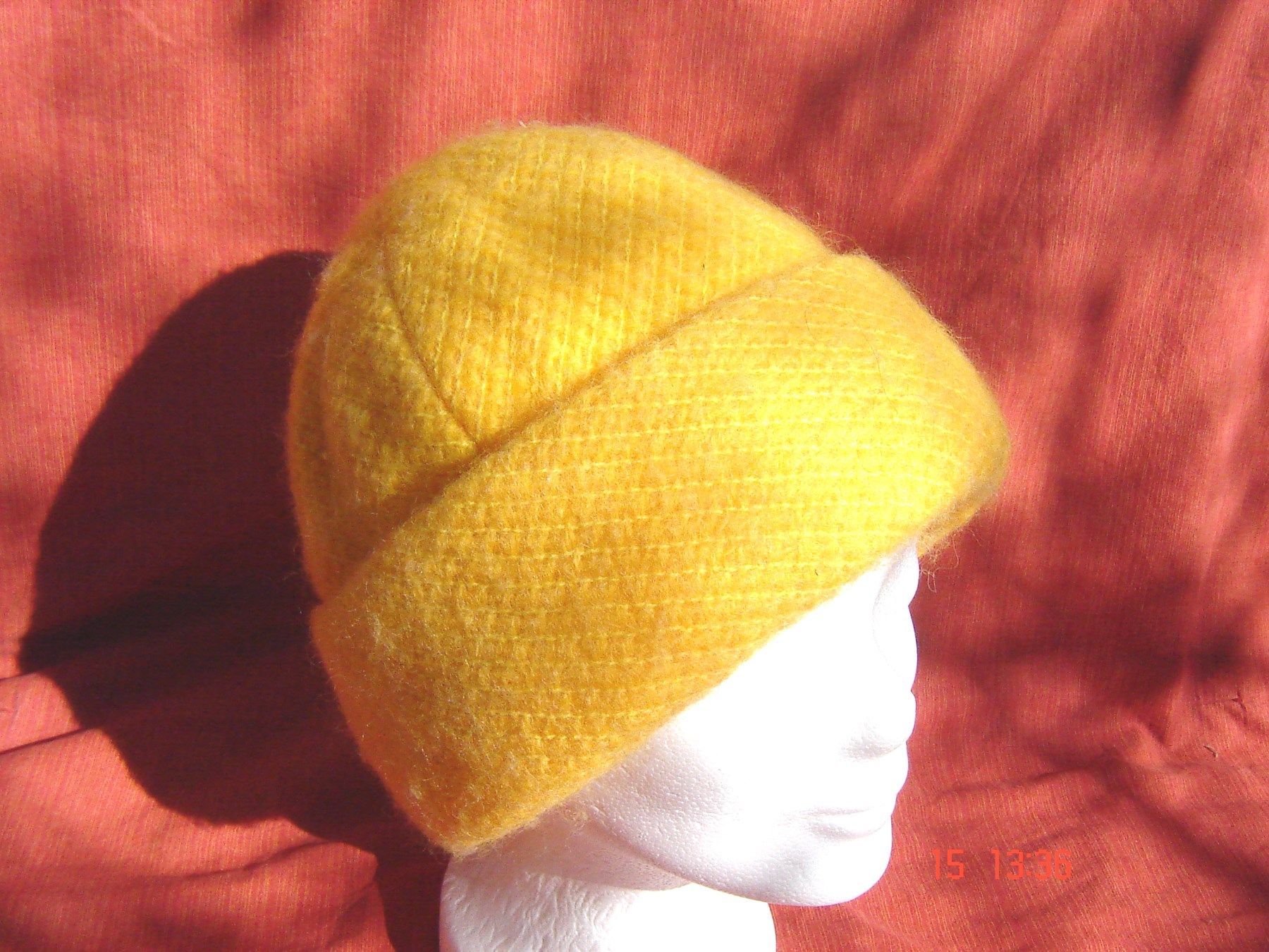 Vintage Umschlagmütze Strickmütze Wintermütze gelb p ZB1