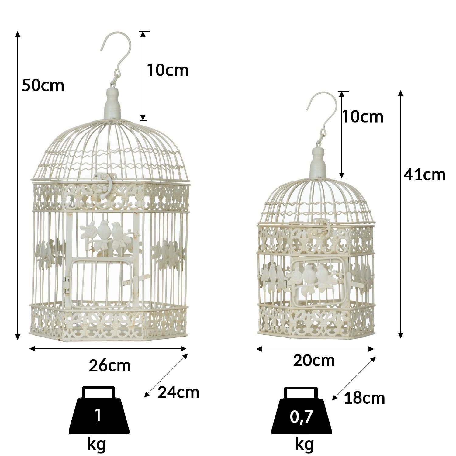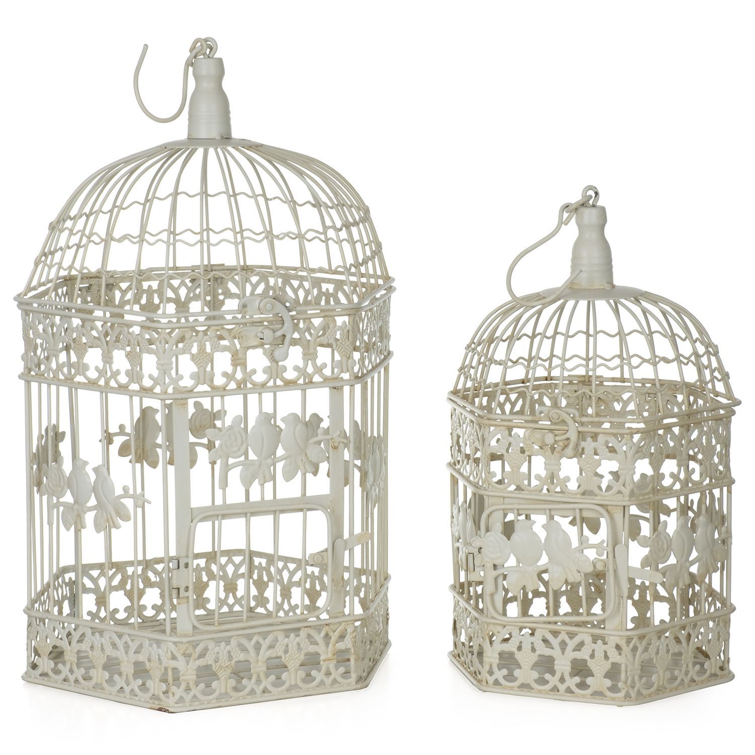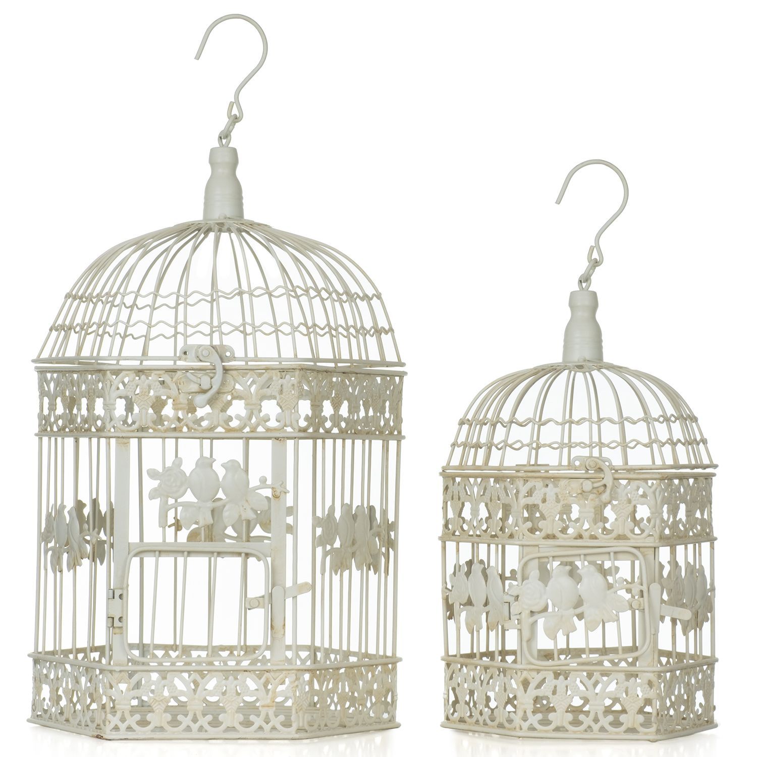 Vintage Vogelkäfig Deko Set 2-teilig creme aus Metall 50 x 26 x 24 cm & 41 x 20 x 18