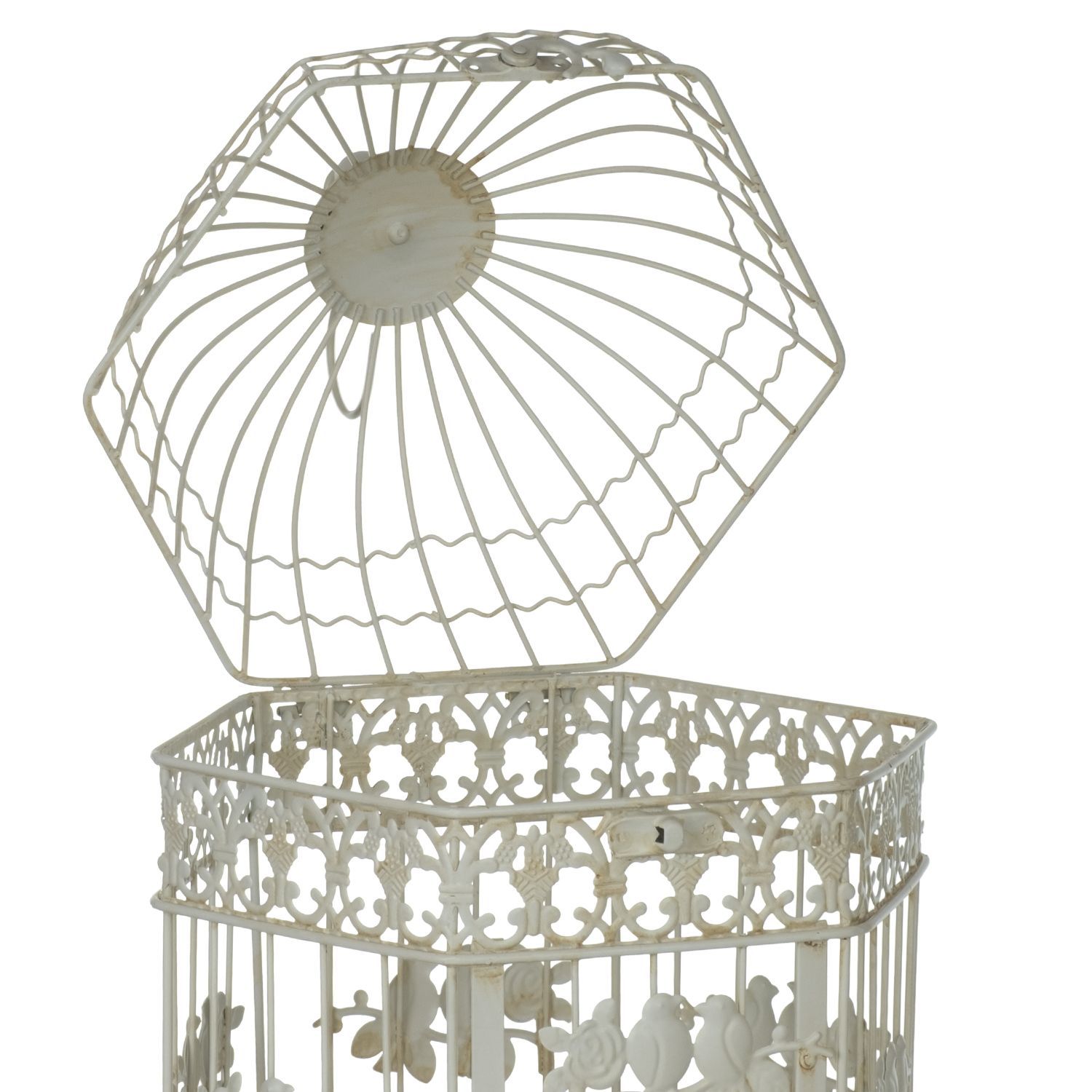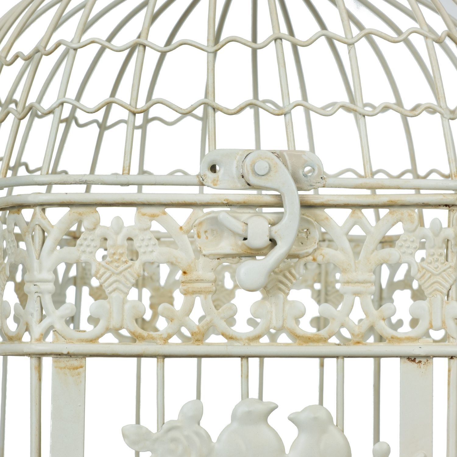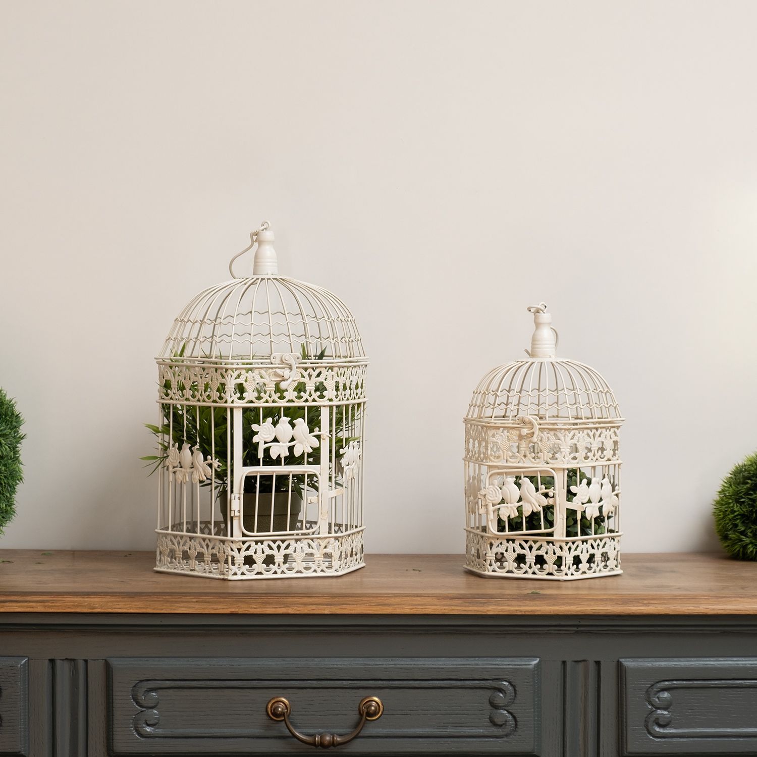 Vintage Vogelkäfig Deko Set 2-teilig creme aus Metall 50 x 26 x 24 cm & 41 x 20 x 18