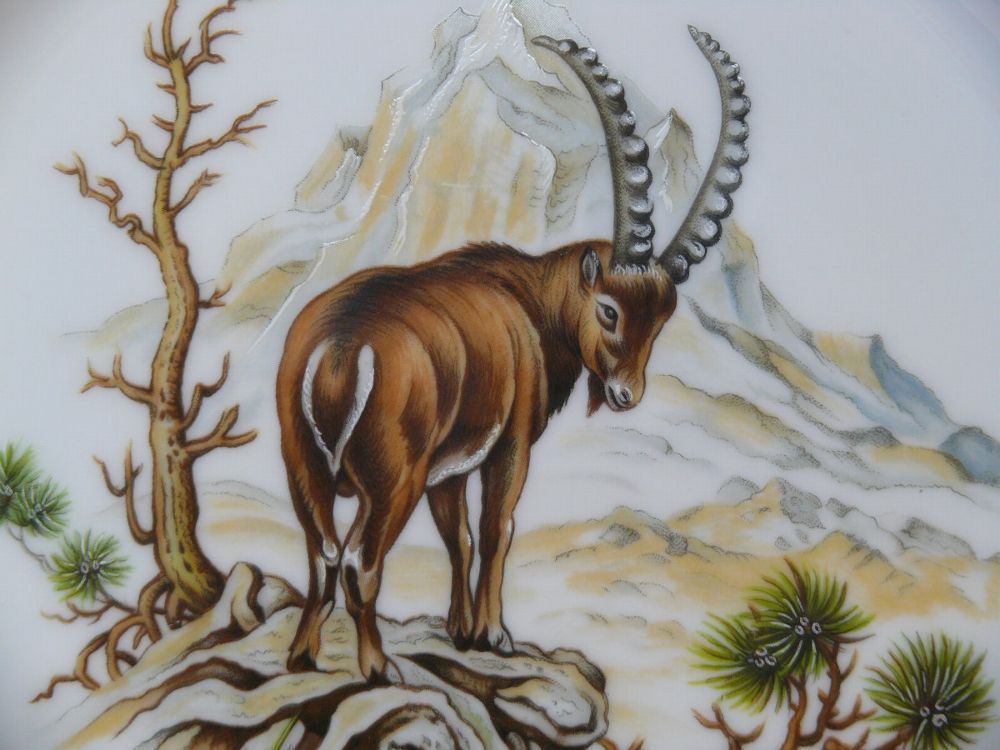 Sehr Seltene Bauscher Weiden Bavaria Porzellan Germany Wandertag Oberleinach - Vintage Wandteller Sammelteller Zierteller Bauscher Weiden Bavaria Germany Alpensteinbock Bock Foto 1981 Alle mächtigen Alpensteinböcke sondern sich gerne als Einzelgänger ab. Zur Paarungszeit im Dezember und Januar stoße