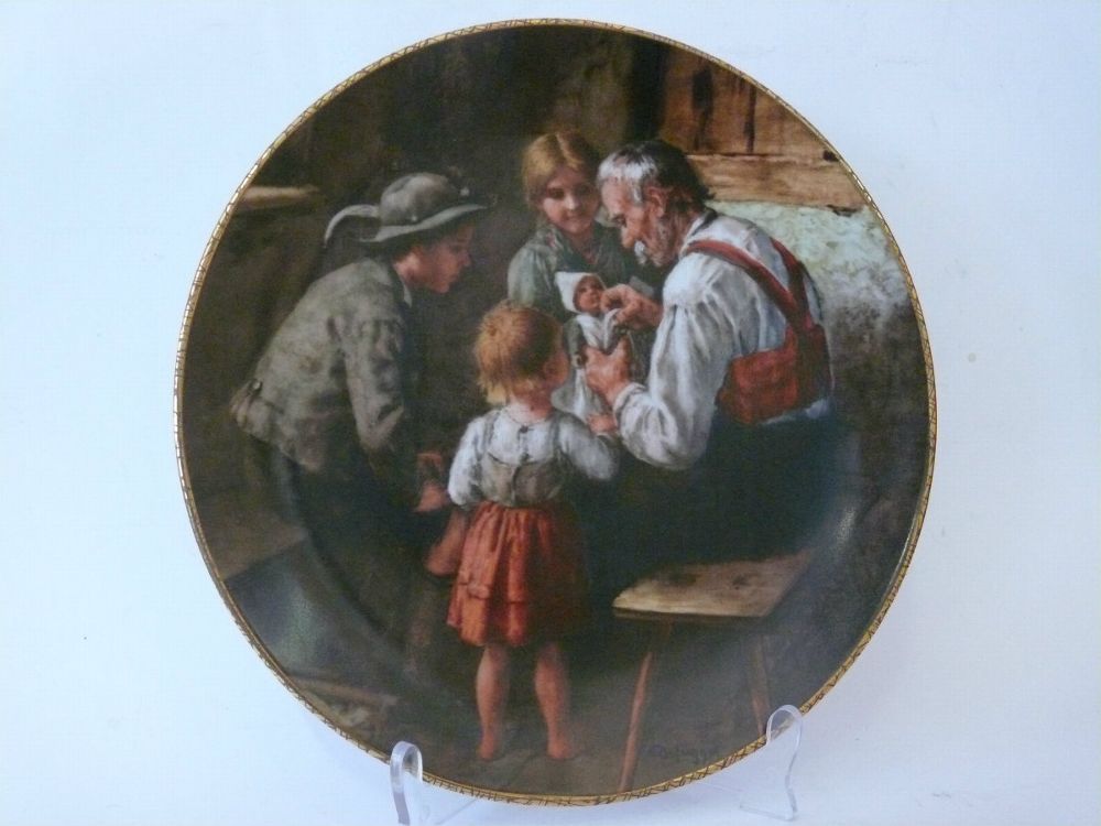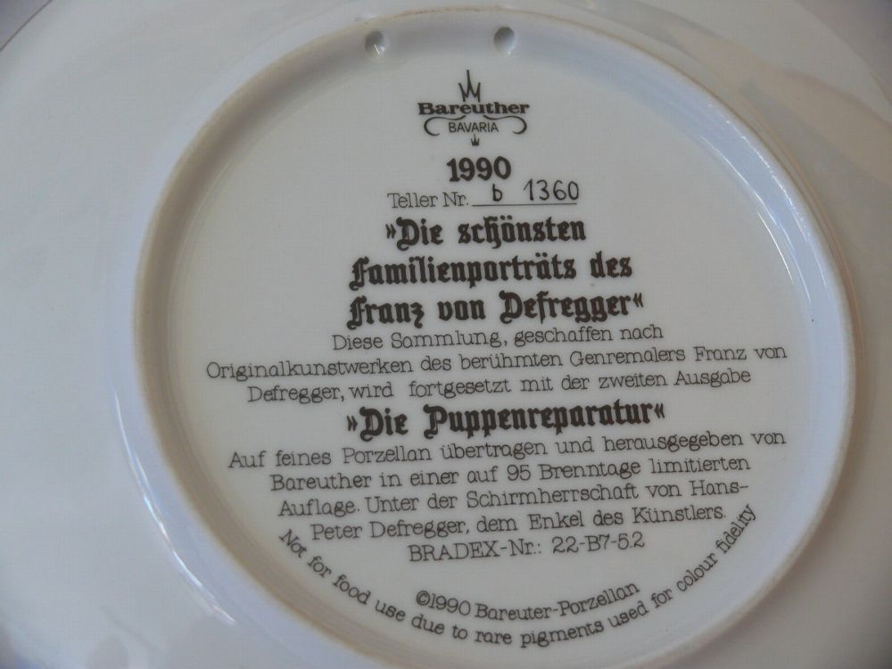 Originale Kunstwerk von Franz von Defregger mit Goldrand 1990 Limitierte Auflag - Vintage Wandteller Sammelteller Zierteller Bareuther Bavaria Porzellan Sammelteller Teller Der Zweite Ausgabe Die Puppenreparatur Franz von Defregger Die Schönsten Familienporträts des Franz von Defregger Limitierte Au