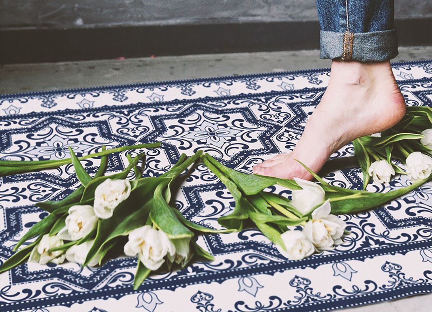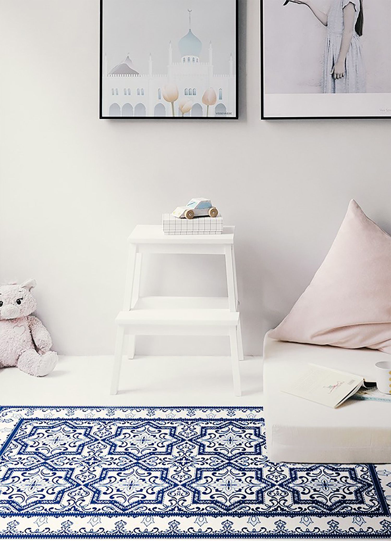 Vinyl Teppich Läufer Zum Wohnzimmer Tulup Blau portugiesischer Stil Bodenmatte