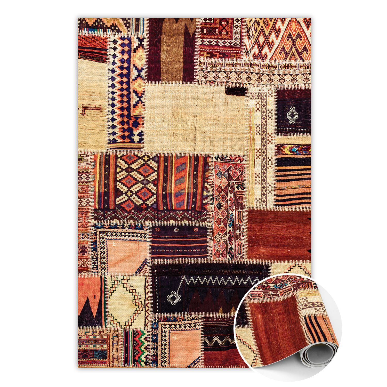 Vinyl Teppich Läufer Zum Wohnzimmer Tulup Braun abstraktes Patchwork Bodenmatte