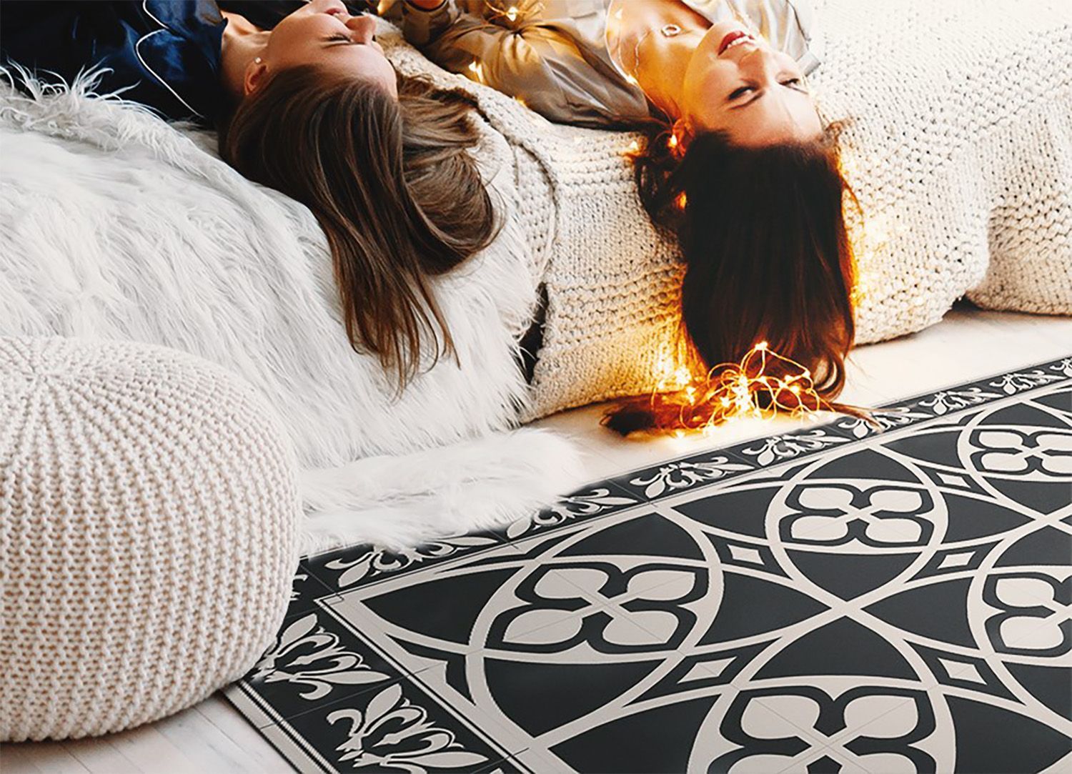 • Vinyl Teppich Zum Wohnzimmer Tulup Schwarz Und Weiß sterne Bodenmatte