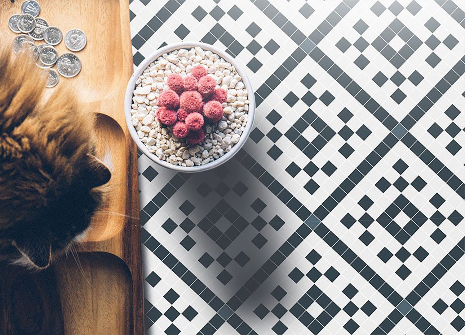 • Vinyl Teppich Zur Küche Tulup Mehrfarbig holzwürfel Bodenmatte