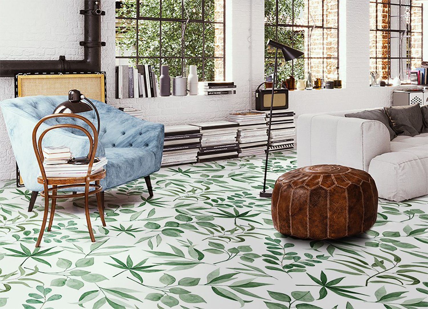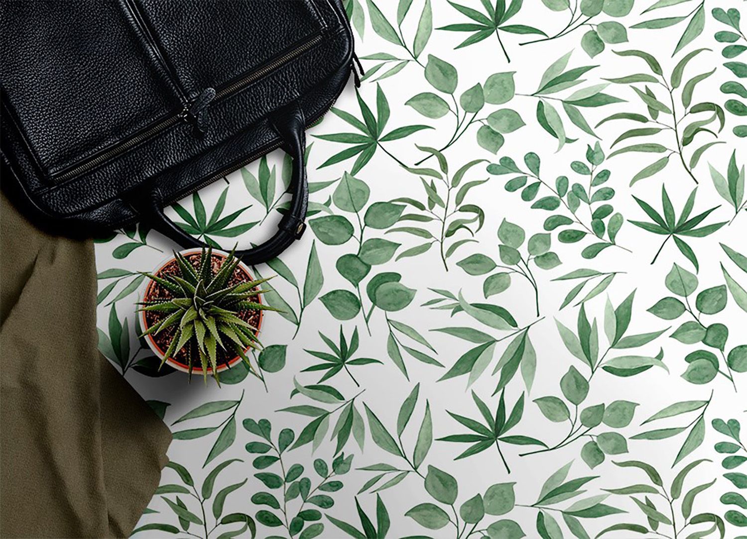 Vinyl Teppich Zum Wohnzimmer Tulup Grün kleine Blätter Bodenmatte