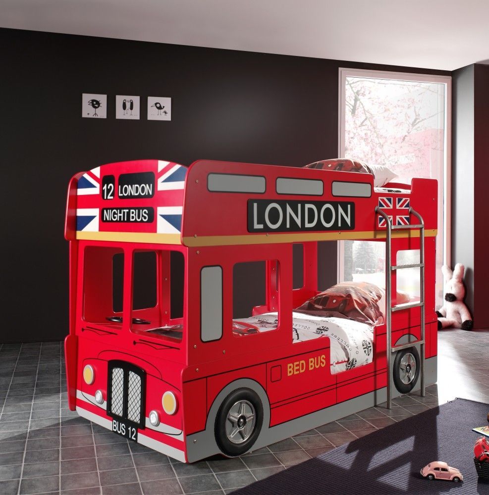 VIPACK Vipack: Autobett Etagenbett "LONDON BUS" 90 x 200 mit 2 Lattenroste - Stockbett
