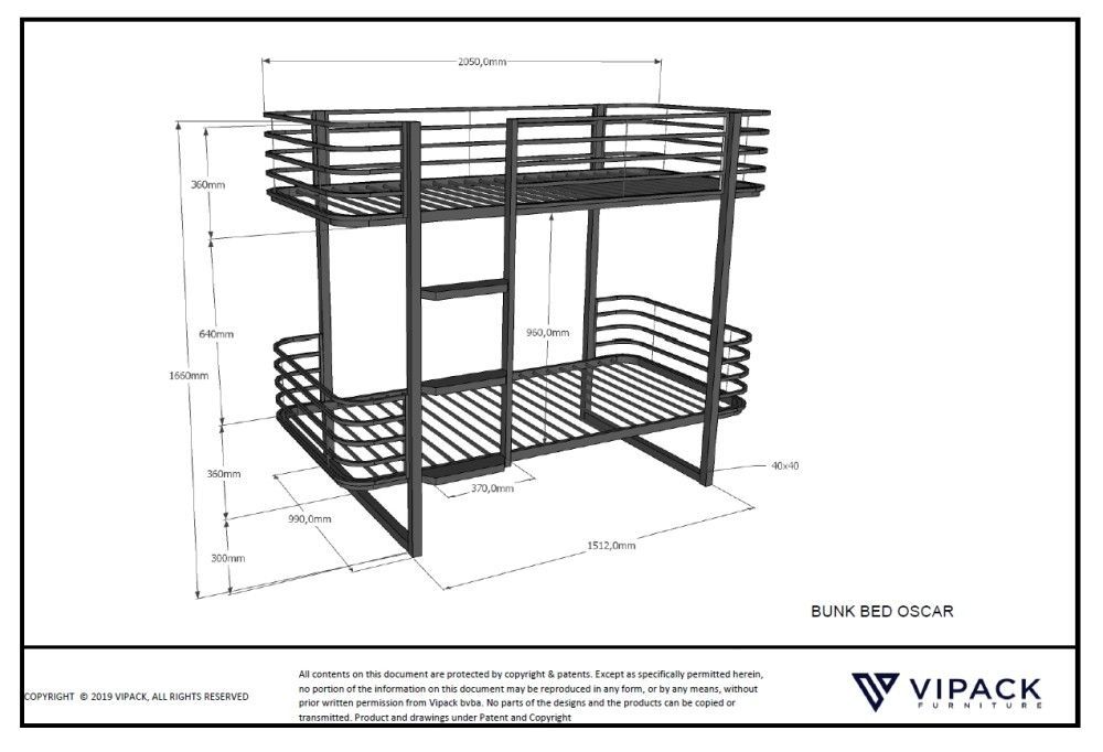 VIPACK Vipack Etagenbett Oscar aus Metall Hochbett Stockbett Jugendbett Schwarz
