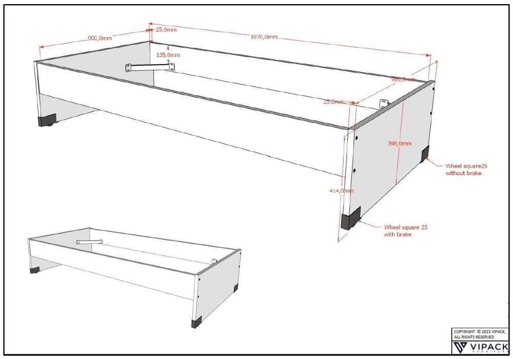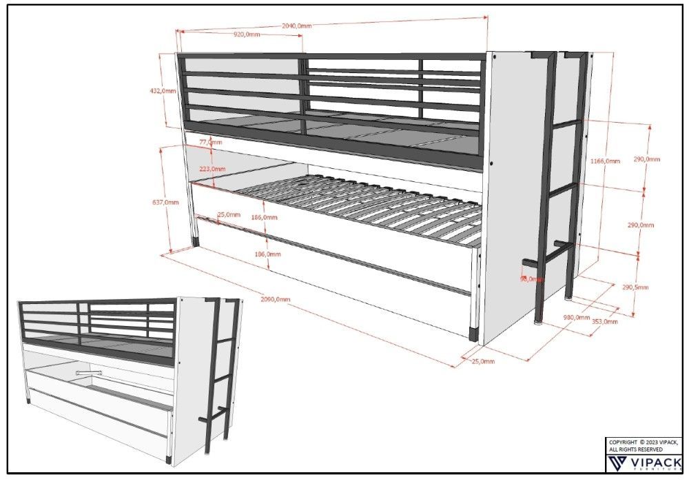 VIPACK Vipack Funktionsbett 90x200 Spielbett Jugendbett Schreibplatte Bettschublade Weiß