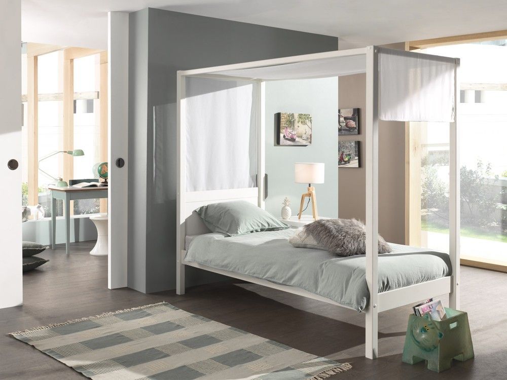 VIPACK Vipack Himmelbett "PINO" 90x200 inkl. Textilhimmel - Kinderbett Jugendbett Weiß