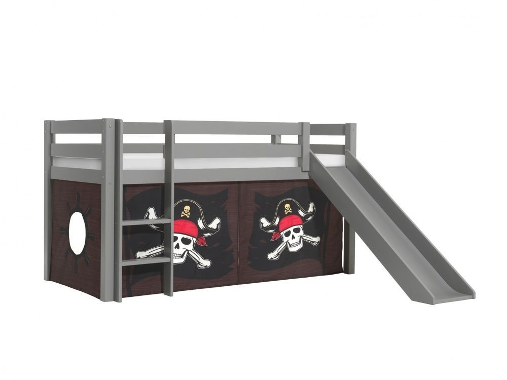 VIPACK Vipack: Pino" Halbhohes Bett mit Rutsche+Textilset "Caribian Pirate"-Grau