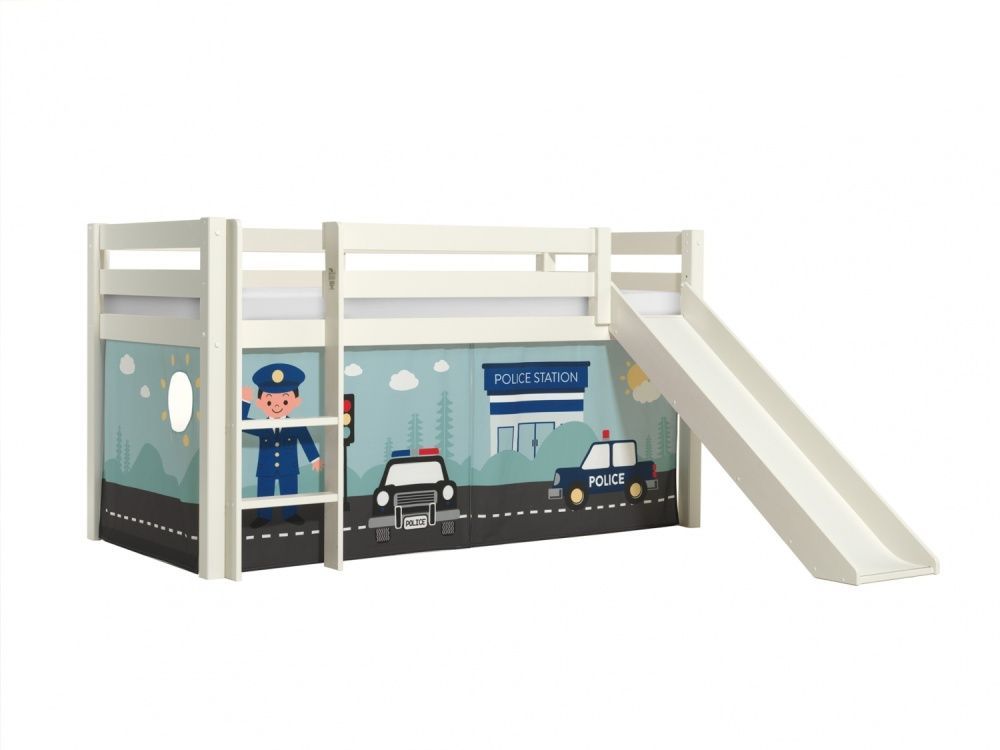 VIPACK Vipack: Pino" Halbhohes Bett mit Rutsche+Textilset "Police"-Weiß