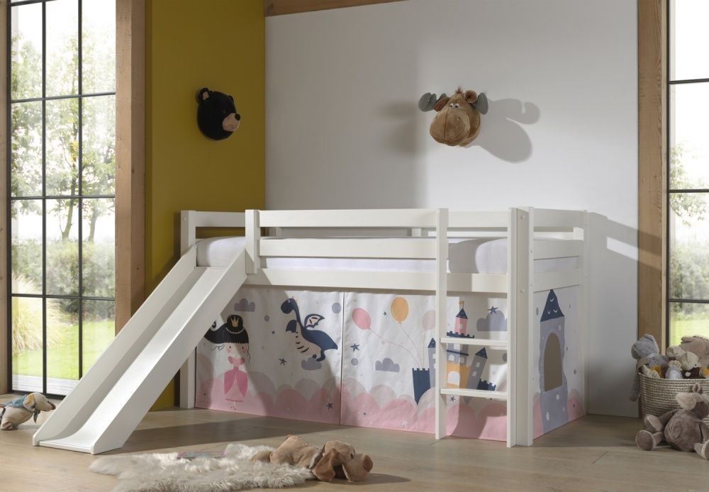 VIPACK Vipack: Pino" Halbhohes Bett mit Rutsche+Textilset "Princess Sophie"-Weiß