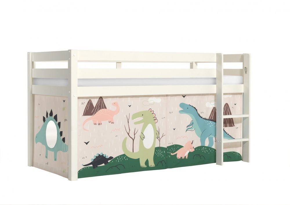 VIPACK Vipack: Pino" Halbhohes Bett mit Textilset "Dino"-Weiß