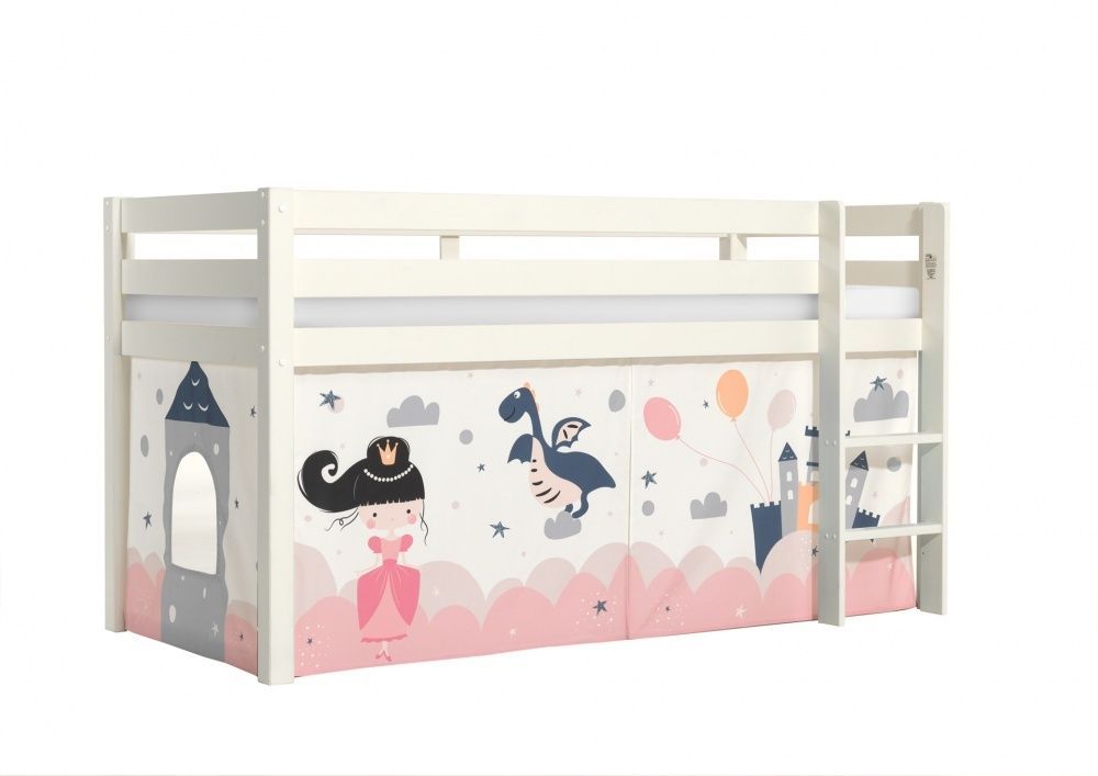 VIPACK Vipack: Pino" Halbhohes Bett mit Textilset "Princess Sophie"-Weiß