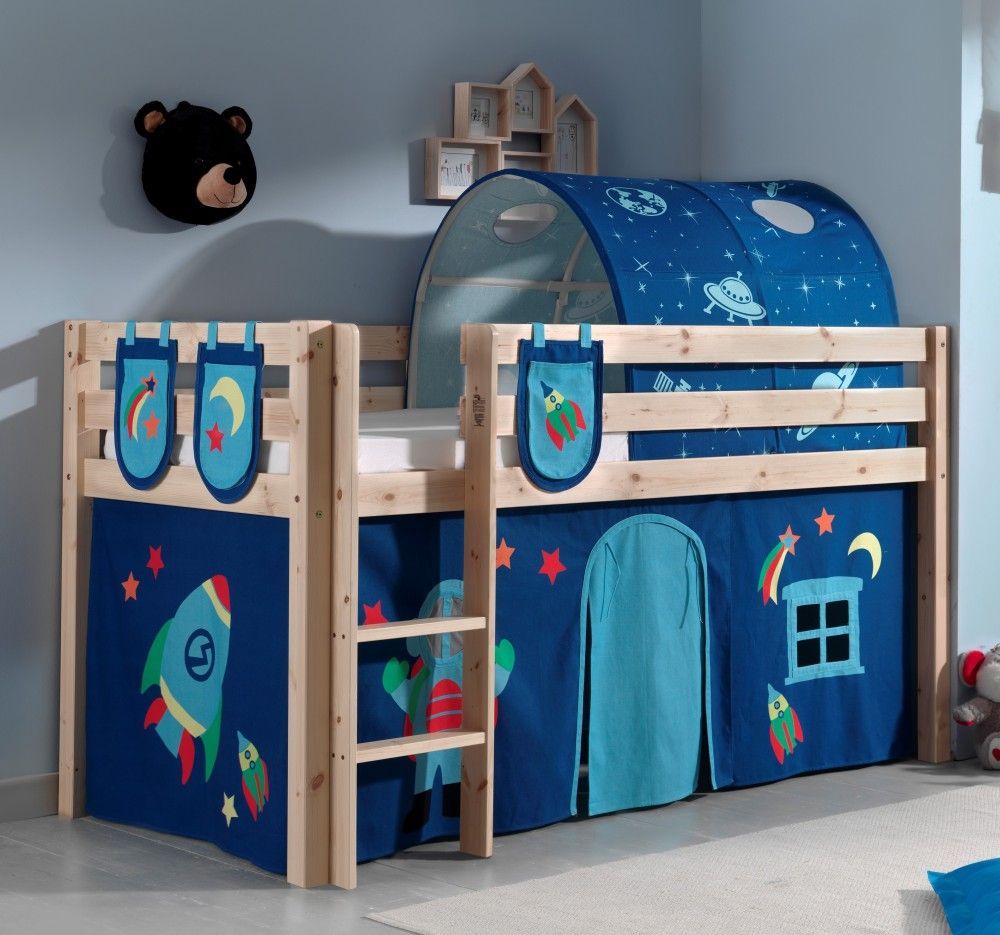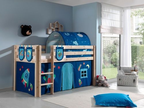 VIPACK Vipack: PINO Spielbett 90 x 200 und Textilset "Astronaut" - Kiefer massiv Natur