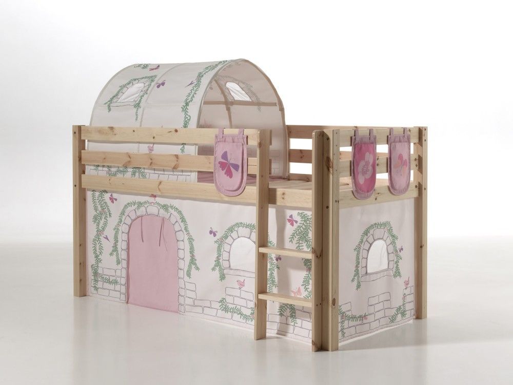 VIPACK Vipack: "PINO" Spielbett / Hochbett 90 x 200 mit Textilset "Birdy" Massiv Natur