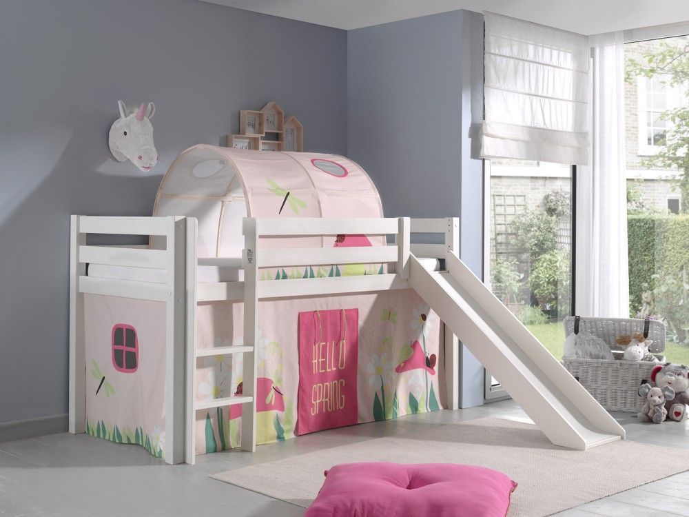 VIPACK Vipack: PINO Spielbett mit Rutsche 90x200 Vorhang / Tunnel "Spring" Kiefer Weiß