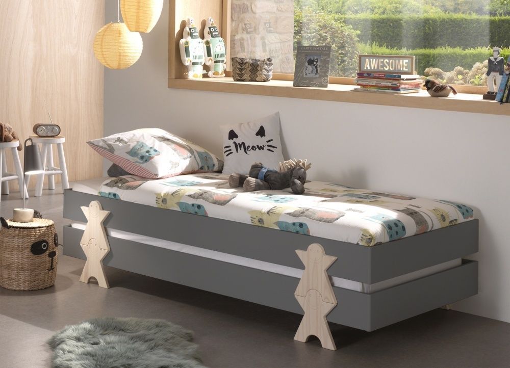 VIPACK Vipack Set 2 Einzelbetten Stapelbetten MODULO Liegefläche 90 x 200 Grau