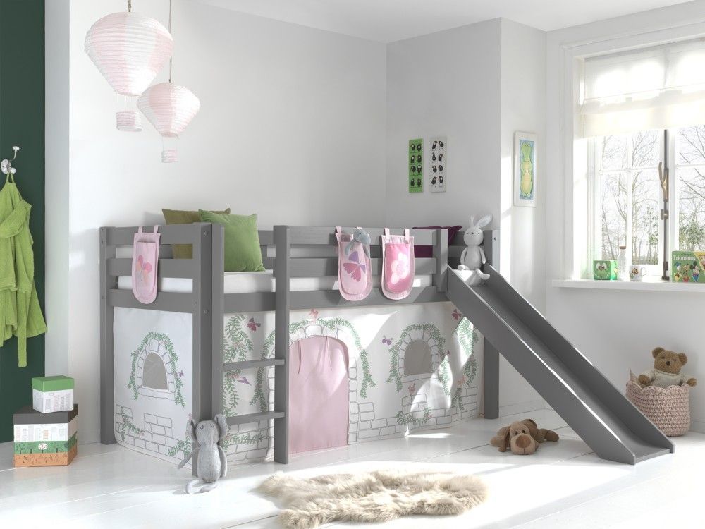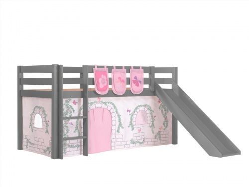 VIPACK Vipack Spielbett "Pino" mit Rutsche+Textilset+3 Taschen -Jugend/Kinderbett Grau