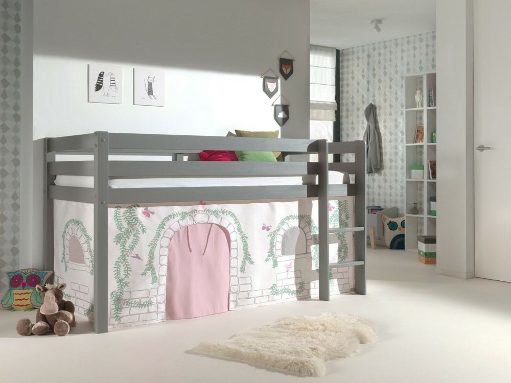 VIPACK Vipack Spielbett "Pino" + Textilset - Jugend/Kinderbett Hochbett Etagenbett Grau