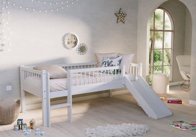 VIPACK Vipack Spielbett "Pino" + Textilset - Jugend/Kinderbett Hochbett Welltall Grau