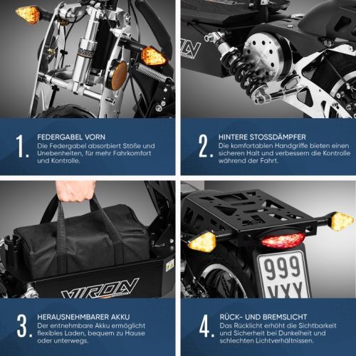Viron Elektroscooter mit Straßenzulassung VR-1500-EEC - Elektroroller 1000 Watt, E-Sc