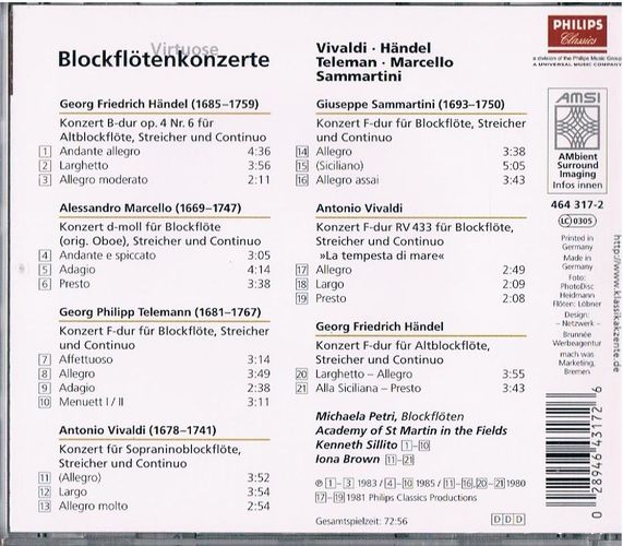 Virtuose Blockflötenkonzerte - Vivaldi, Händel, Teleman, Marcello, Sammartini - CD