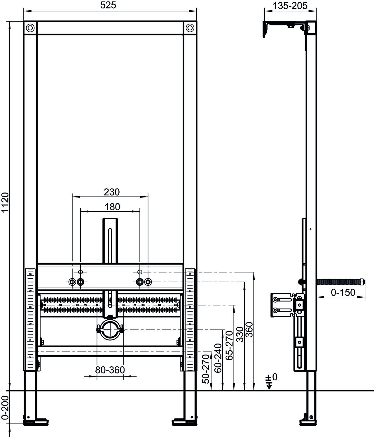 VIS CONEL Bidet-Element E3 für Trockenbau mit Wandhalter BH: 1120mm VIS Bidet-Montageelement für Wand-Bidet für Einlocharmaturen mit innen- oder außenliegenden Eckventilen, selbsttragende, pulverbeschichtete Stahlrahmenkonstruktion zur Trockenverkleidung, Einbau vor Massivwand, in Leichtbau-Ständerw