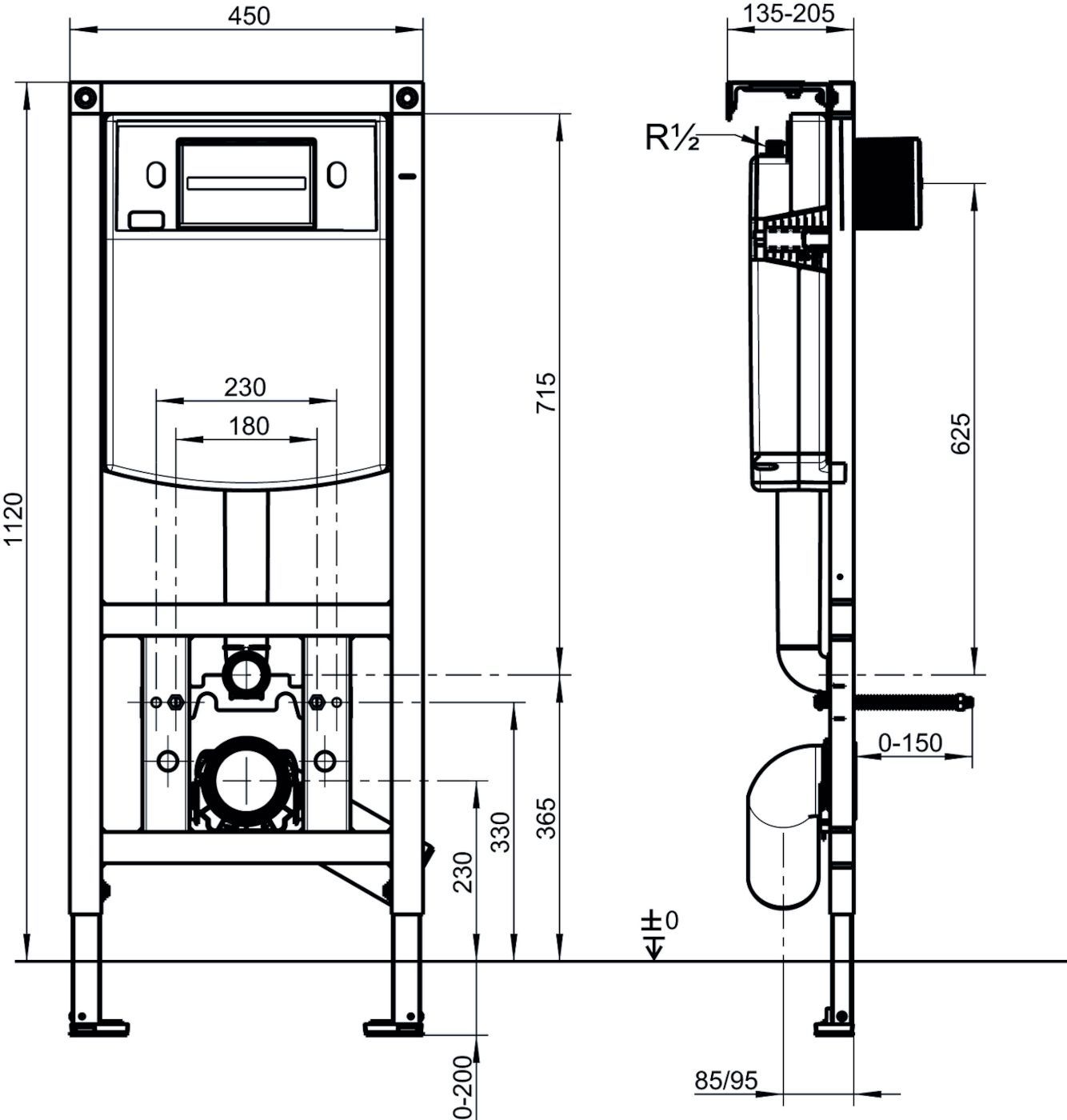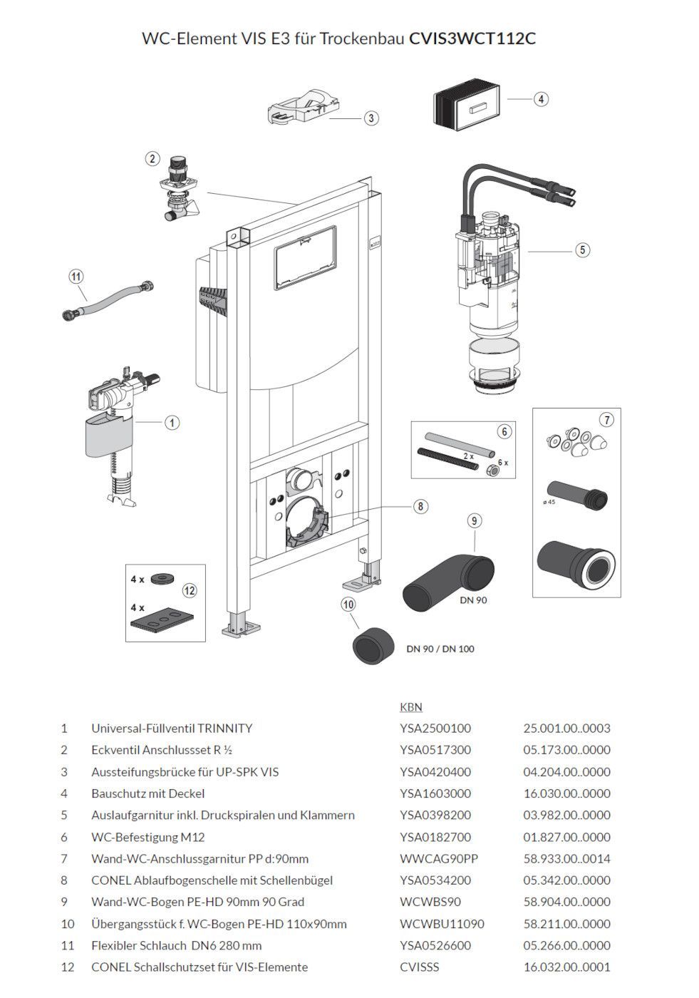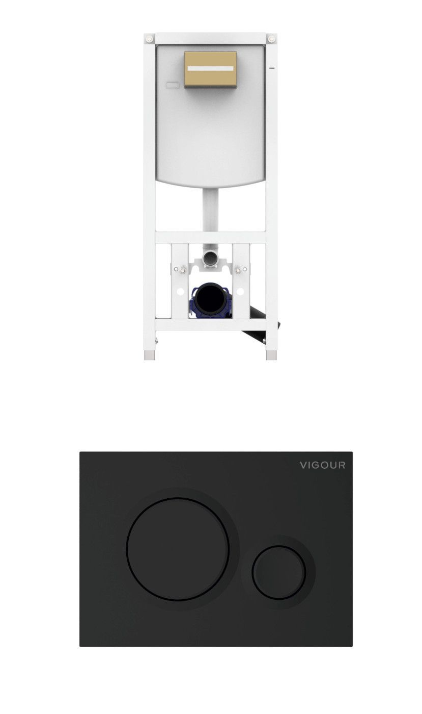VIS CONEL WC-Element E3 für Trockenbau mit UP-Spülkasten, BH: 1120mm, für Wand-WC + Vigour Betätigungsplatte DON matt-schwarz für 2-Mengen-Spültechnik SET besteht aus: VIS CONEL WC-Element E3 für Trockenbau mit UP-Spülkasten, BH: 1120mm, für Wand-WC verstellbare Spülstromdrossel, UP-Spülkasten 7,5 l
