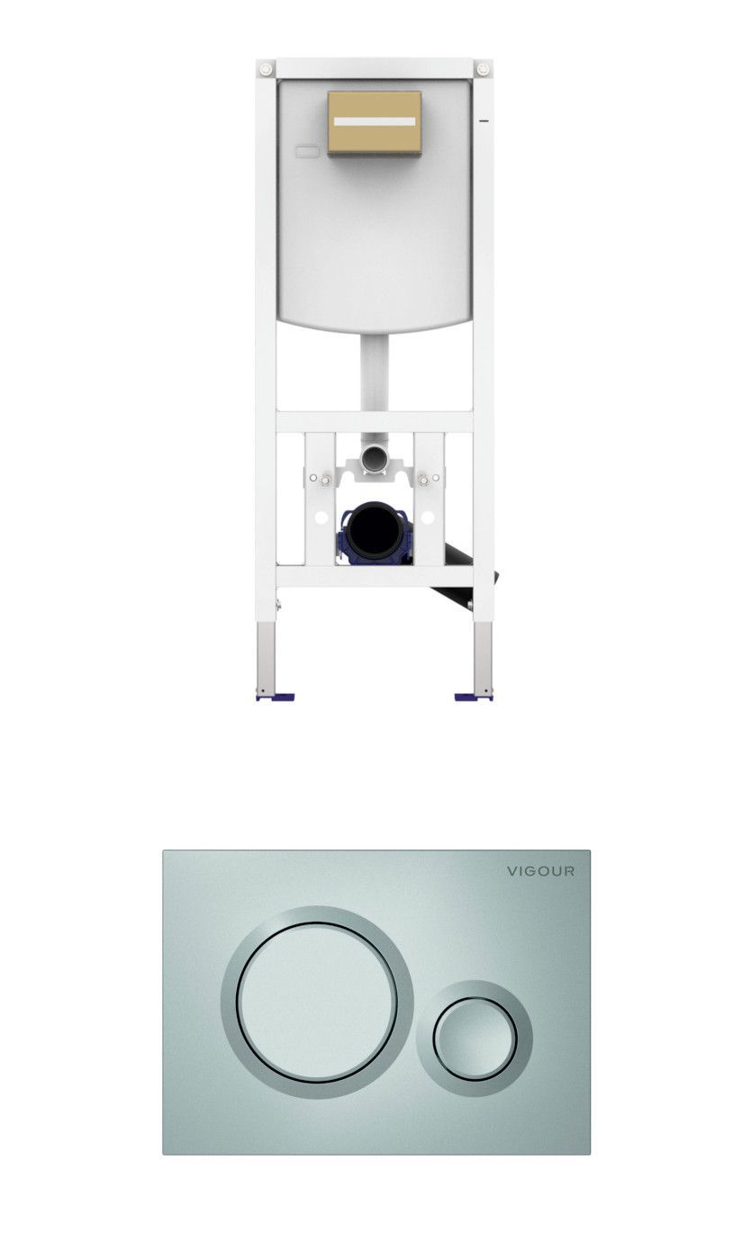 VIS CONEL WC-Element E3 für Trockenbau mit UP-Spülkasten, BH: 1120mm, für Wand-WC + Vigour Betätigungsplatte DON seidenmatt für 2-Mengen-Spültechnik SET besteht aus: VIS CONEL WC-Element E3 für Trockenbau mit UP-Spülkasten, BH: 1120mm, für Wand-WC verstellbare Spülstromdrossel, UP-Spülkasten 7,5 l 4