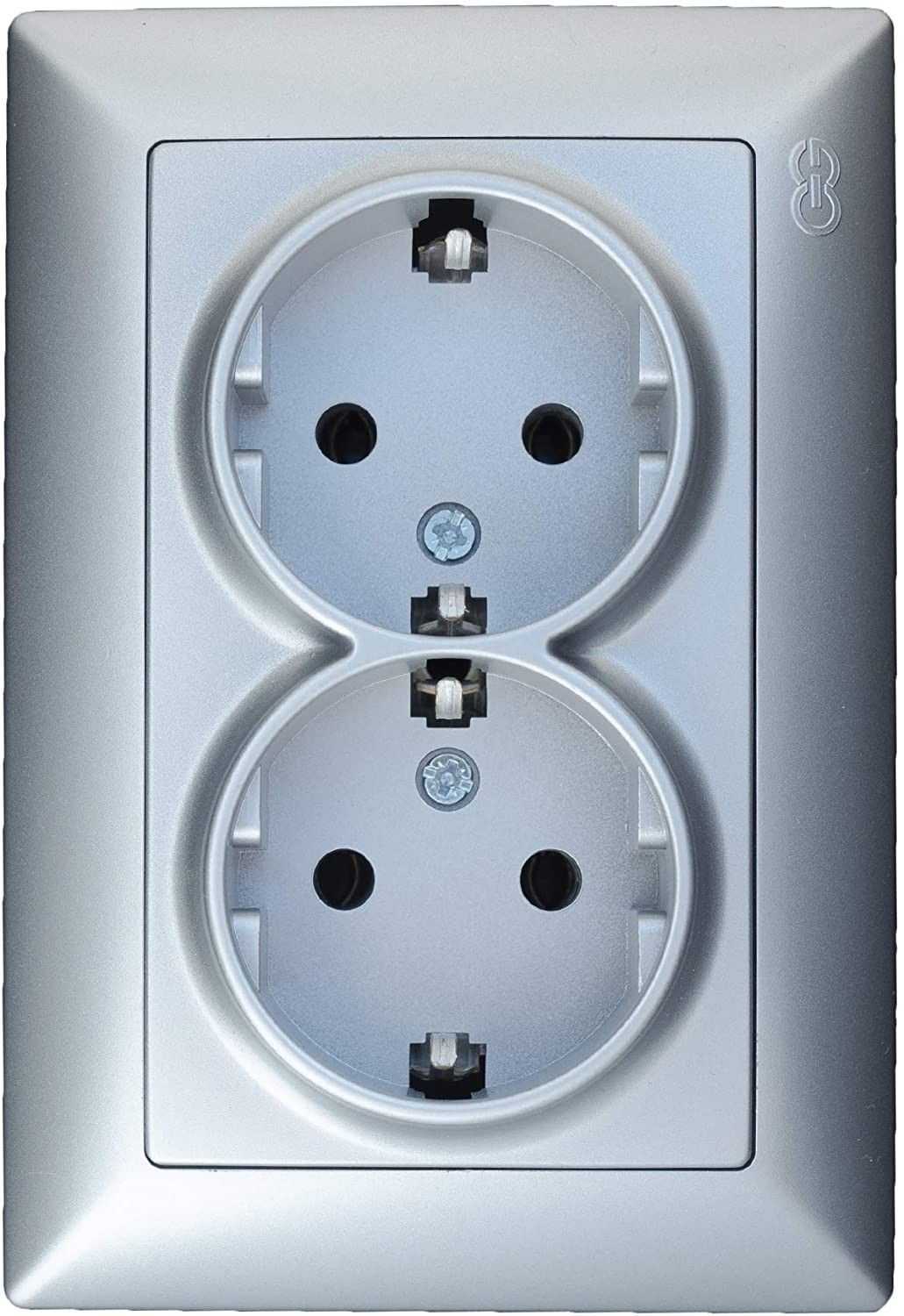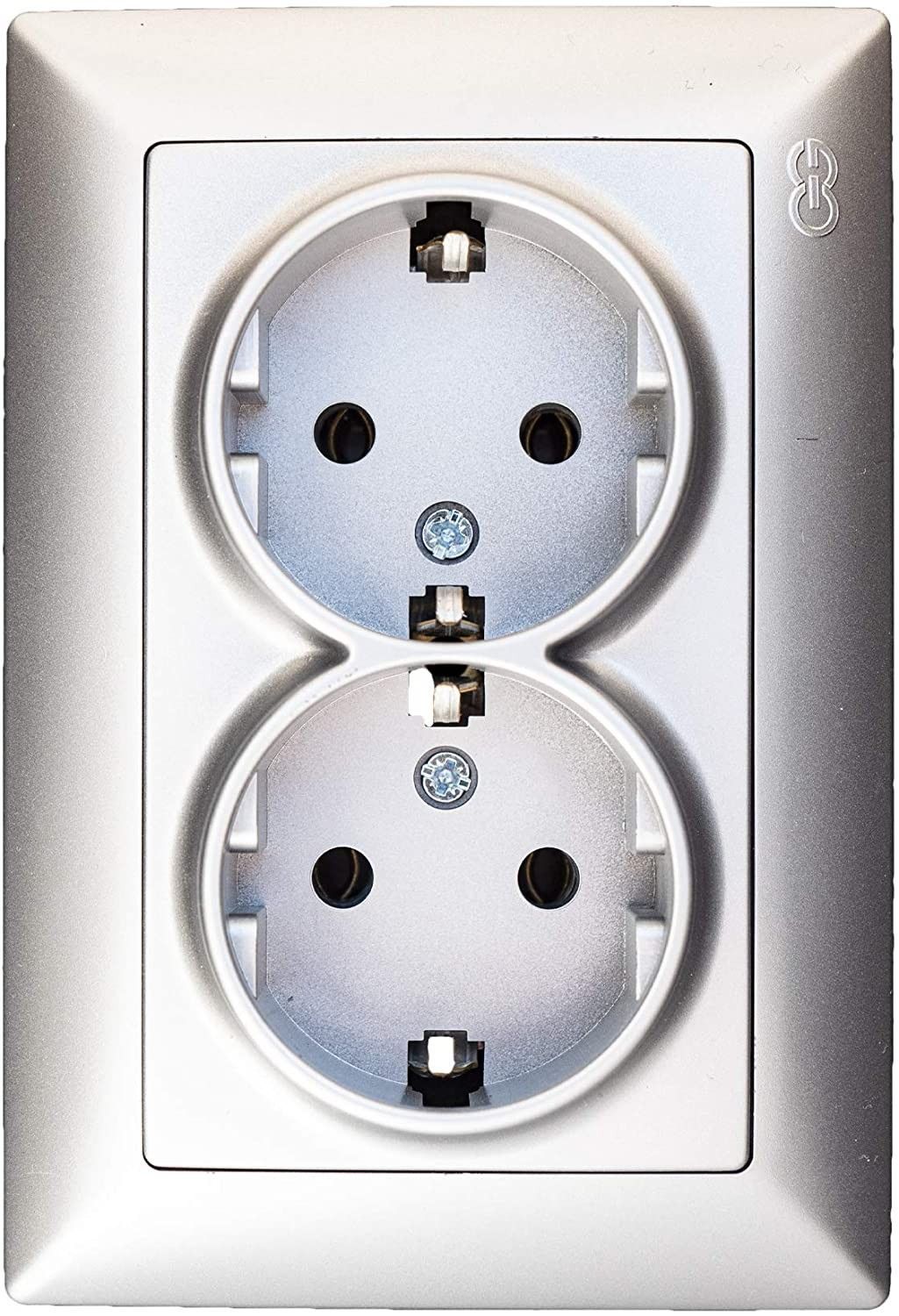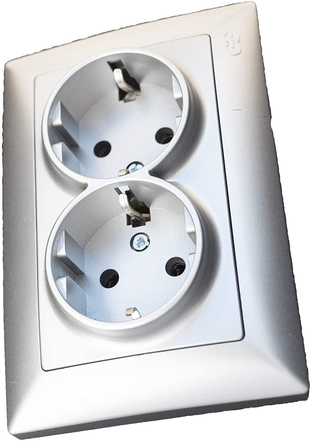Visage Doppel Steckdose Schuko Metallic Grau 16A 250V