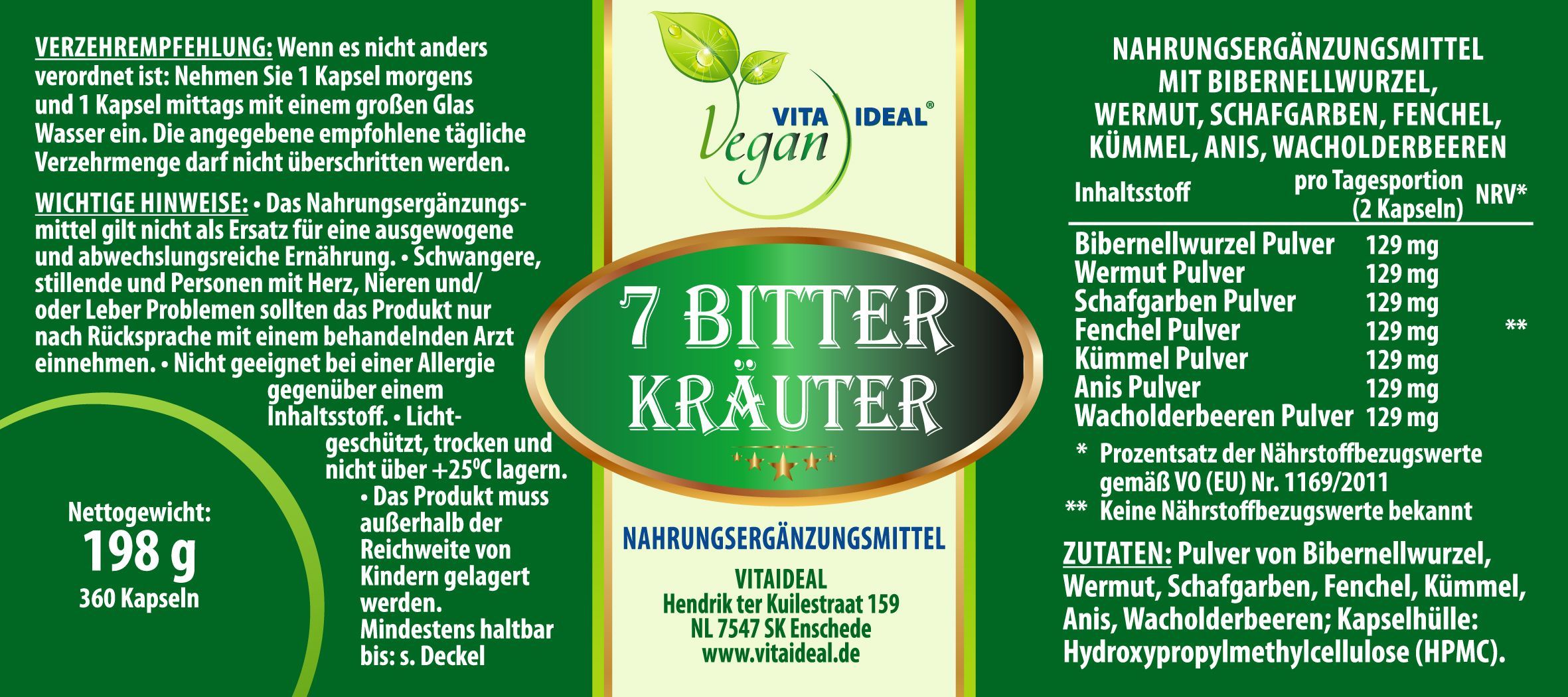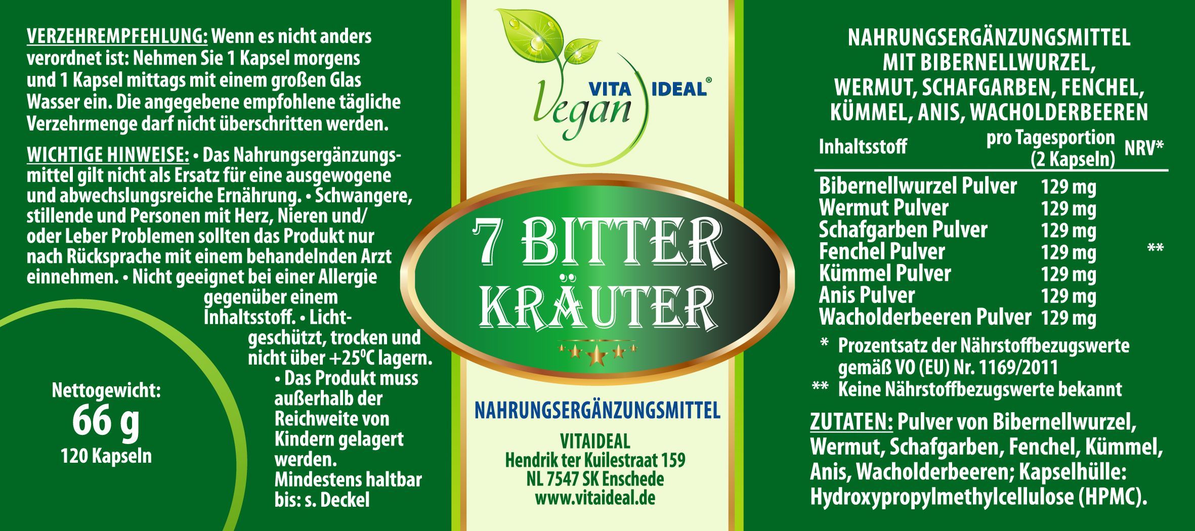 VITA IDEAL Vegan® - 7 - Bitter - Kräuter - Kapseln - Bitterkräuter