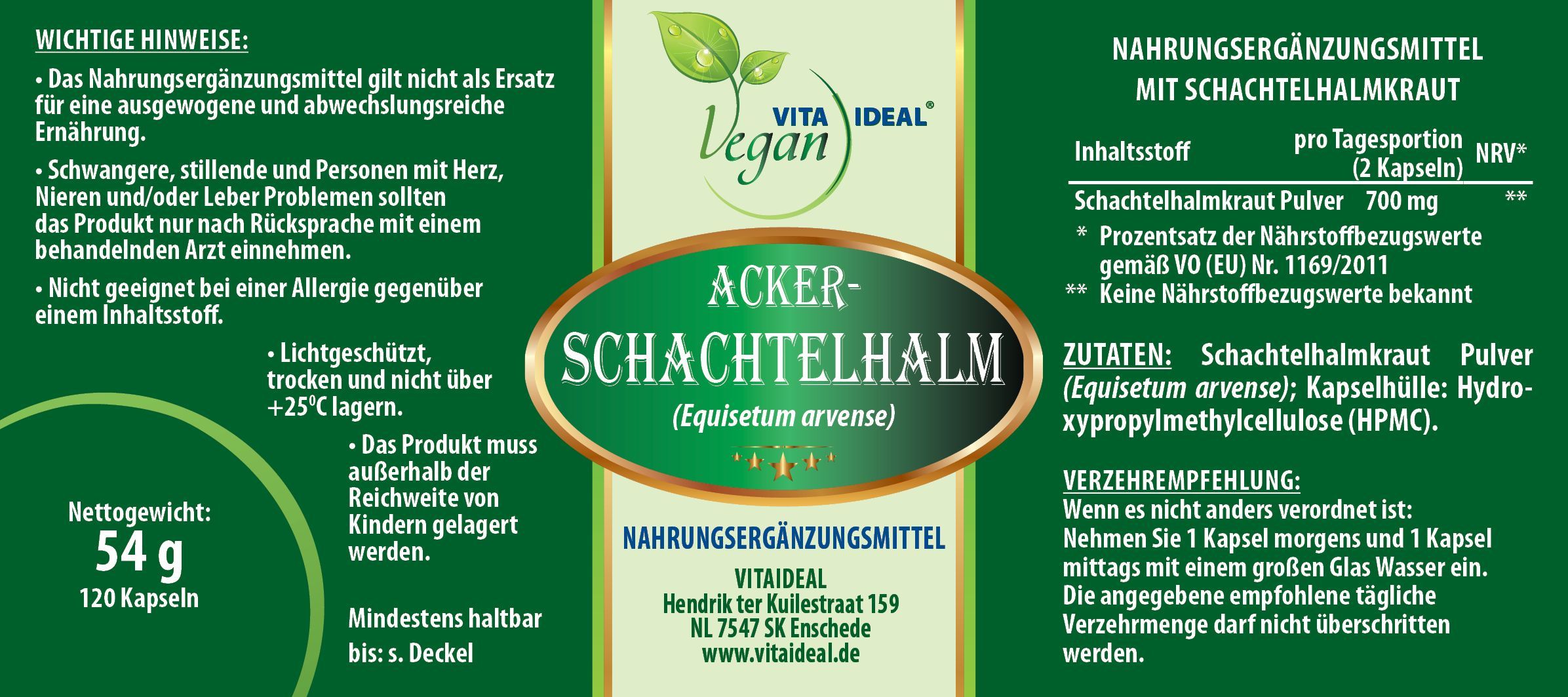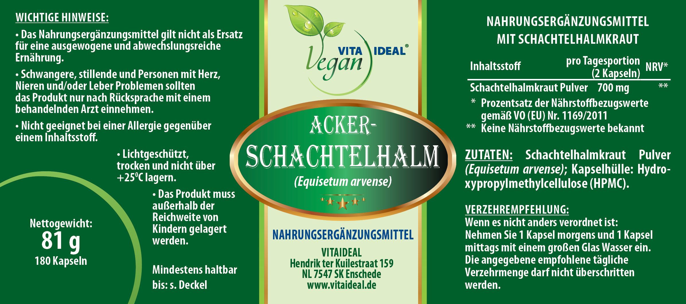 VITA IDEAL Vegan® Acker - Schachtelhalm Kraut Kapseln -Equisetum- Schachtelhalmkraut