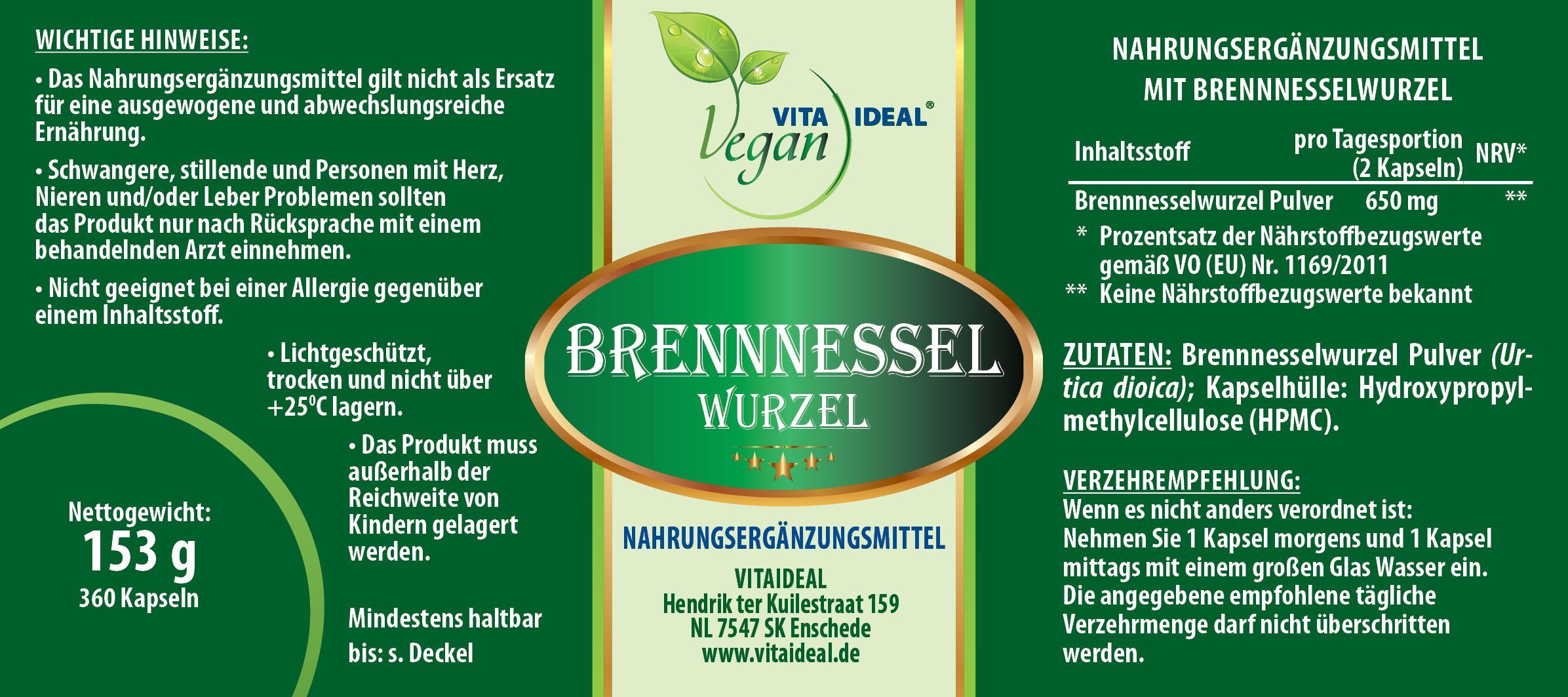 VITA IDEAL Vegan® Brennnessel Wurzel Kapseln - Urtica dioica - Brennesselwurzel