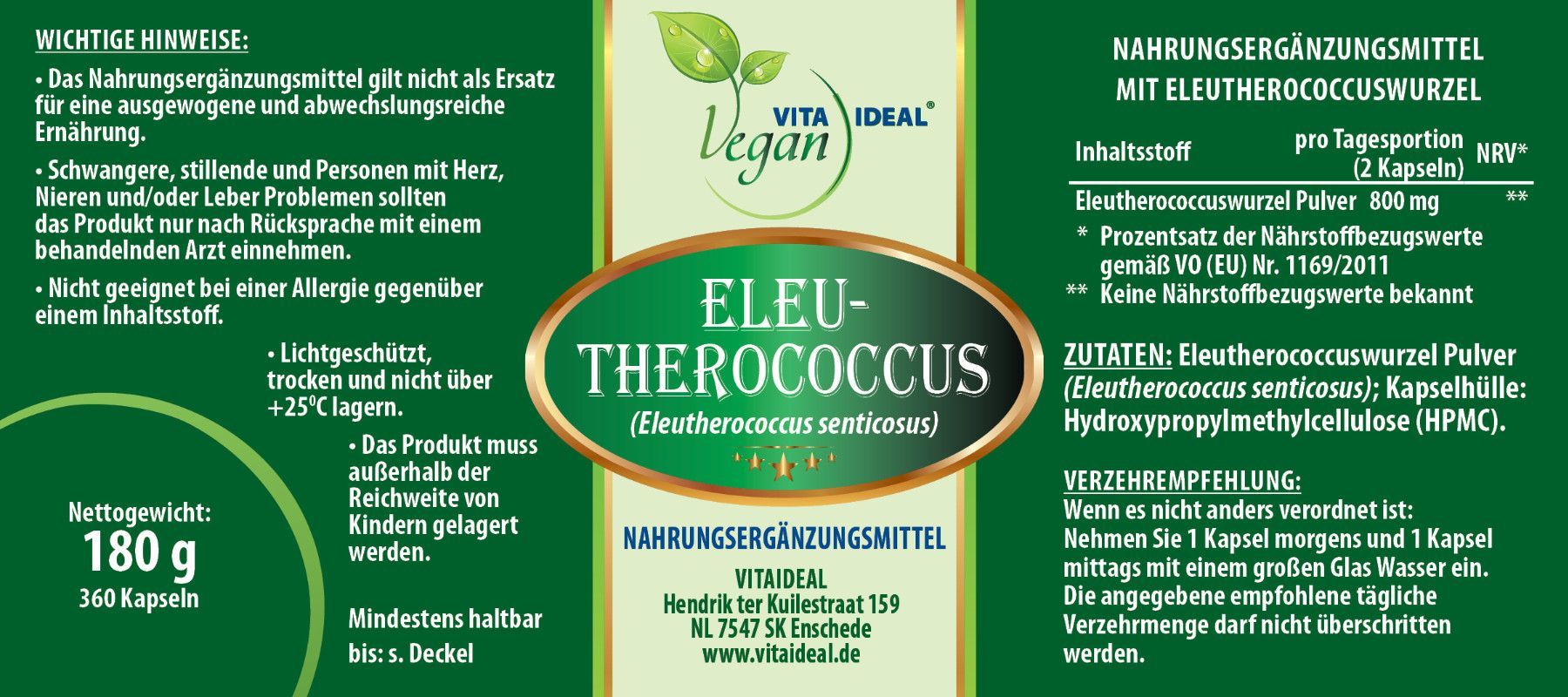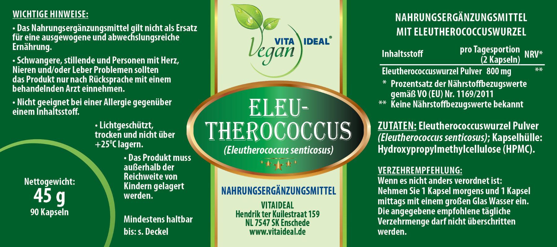 VITA IDEAL Vegan® Eleutherococcus Wurzel Kapseln - Taigawurzel - Senticosus