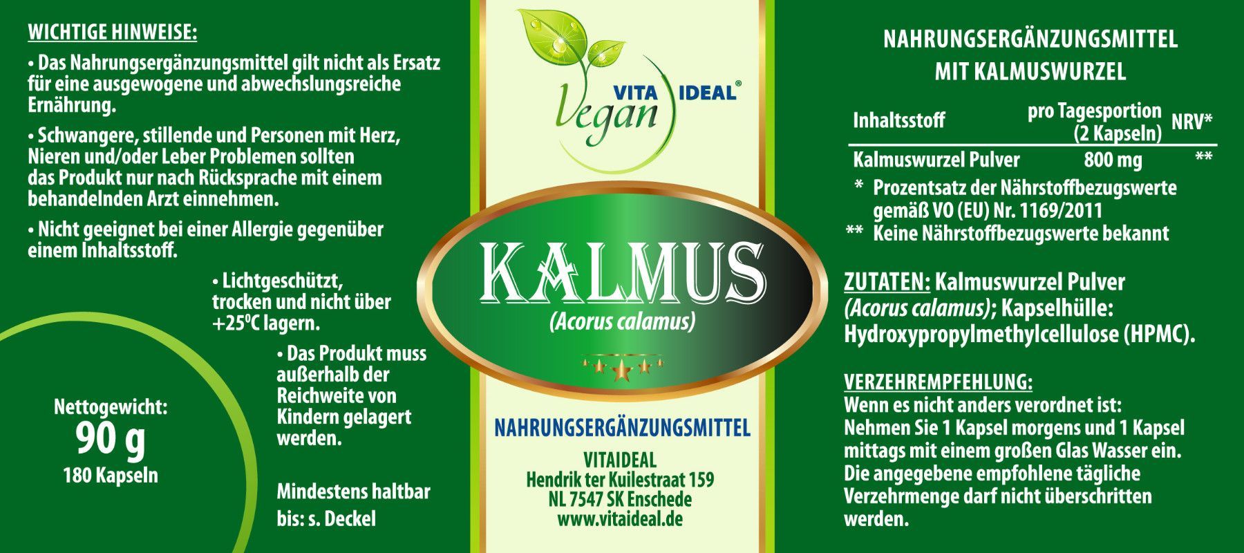 VITA IDEAL Vegan® Kalmus Wurzel Kapseln - Calami Rhizoma natur - Kalmuswurzel