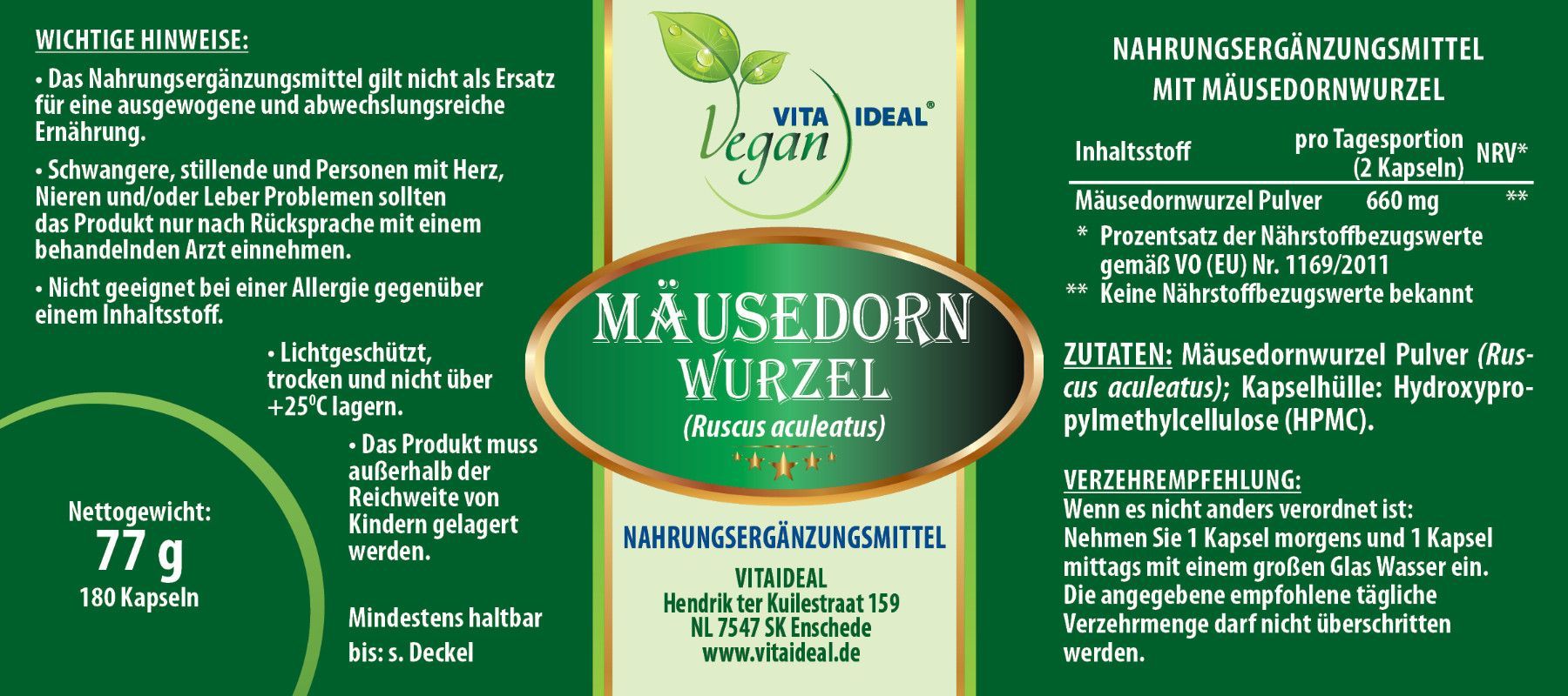 VITA IDEAL Vegan® Mäusedorn Wurzel Kapseln - Ruscus aculeatus - Mäusedornwurzel