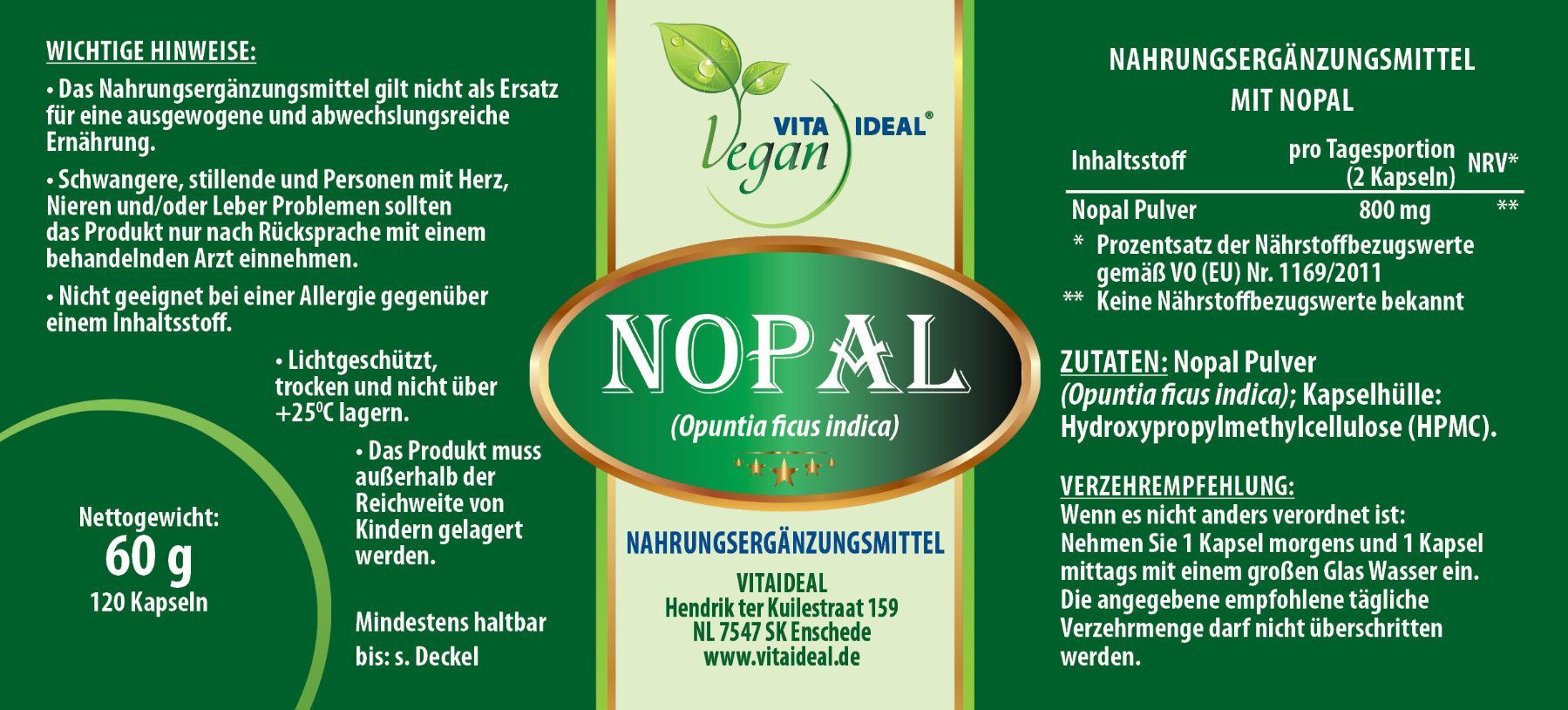 VITA IDEAL Vegan® Nopal Kapseln - Ficus indica - Kaktus Cactaceae - Feigenkaktus -